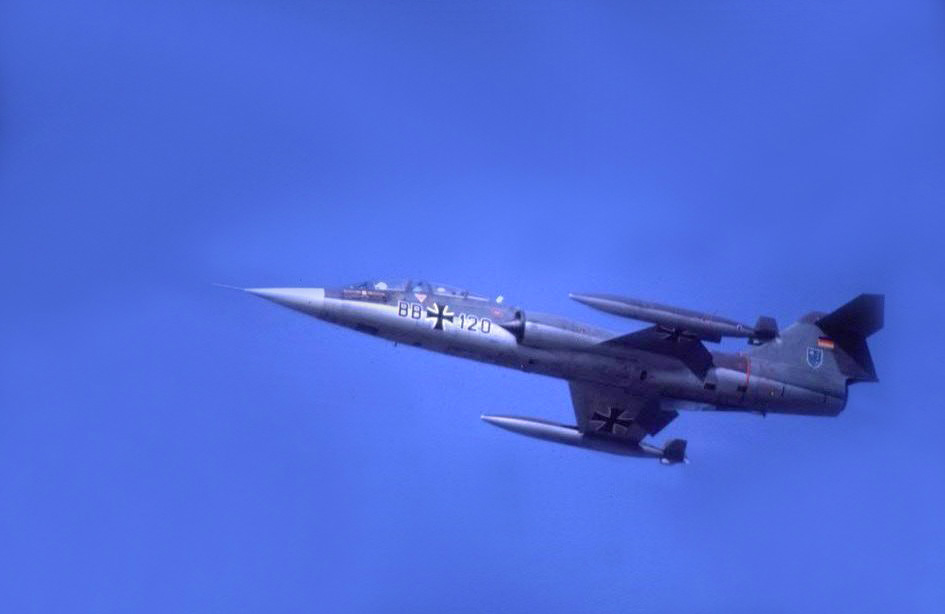 TF-104G 27+97 WaSLw 10 Jever AB in a practice "Low Approach" at RAFG Gutersloh 1976 TF-104G, construction number 583F-5927, company model 583-10-20, assembled by Lockheed manufactured by Lockheed and Messerschmitt (ARGE-Süd); assembly according contract lot 6; fuselage assembled at Messerschmitt-Augsburg, wings manufactured at Messerschmitt-Manching ARGE-Süd parts (fuselage, wings and tail) airlifted to USA September 16, 1965 with a Canadair CL-44D airfreighter of "Flying Tiger Line" at Lockheed-Burbank assembled and test flights coded KF+227 at Palmdale in 1965 according lot 6; airlifted to Avio Diepen, Ypenburg, Netherlands on February 14, 1966 for reassembly camouflage scheme "Norm 62" according tech order "TA-196"; acceptance date April 12, 1966 by BABwFokker BB+120 WaSLw 10 at Jever AB delivery date on April 14, 1966 27+97 JG 71 "Richthofen" at Wittmund AB on March 5, 1970; WaSLw 10 on April 20, 1971; JaboG 34 at Memmingen AB on October 18, 1982 LVR 1 "F-104 Kommando" at Erding AB August 20, 1987 withdrawn from use at LwSchleuse 11 on March 15, 1988 with 3.223 flight hours; struck off charge order (AVA) February 24, 1988MAP (Military Assistance Program) to TuAF (Türk Hava Kuvvetleri) on May 25, 1988 with TuAF serial number 65-5927; coded "9-927" at Balikesir AB with 192 Filo of 9.AJU operational with 193 Filo 1992 at Akhisar AB; withdrawn from use and stored in 1992; July 26, 1995 CFE cut-up; scrapped. coded BB+120 in 1968 copyright © Willy Metze