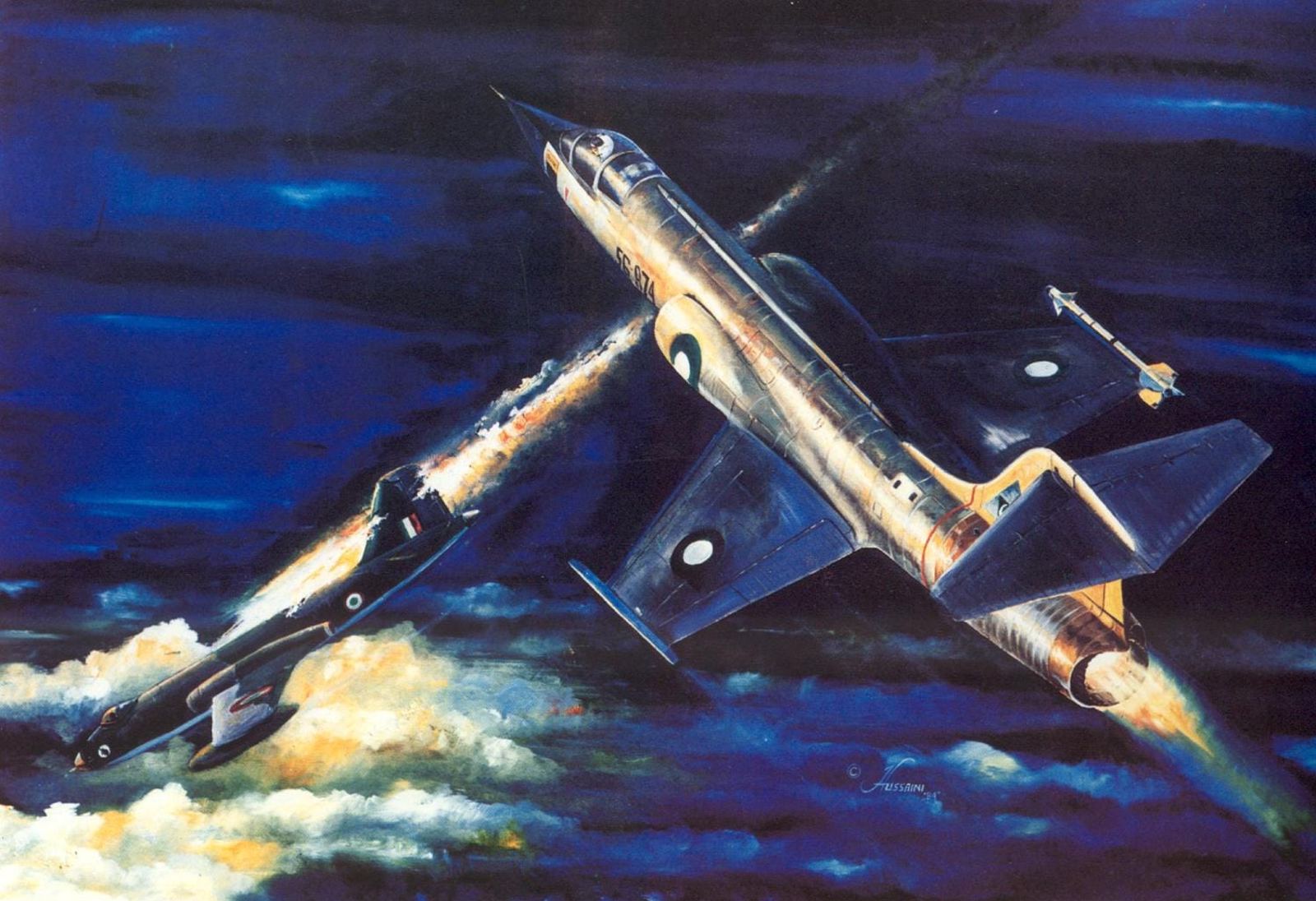 a layer of clouds at 10,000 feet. The pilot of th F-104 was Squadron Leader Jamal A Khan (later Chief of the Air Staff) and the Controller Squadron