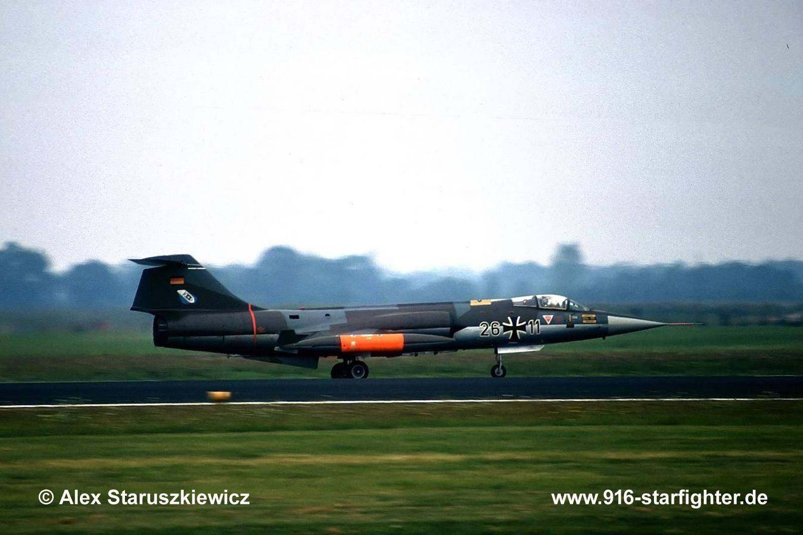 F-104G 26+11 JaboG 33 Buchel at Bremgarten AB in September 1976 F-104G, construction number 683D-9145, company model 683-10-19, built by SABCA manufactured by West Group (ARGE-West); assembly start June 28, 1964 at SABCA-Gosselies in Fighterbomber version first flight October 7, 1964 coded with construction number "9145" 4 factory test fights and 5 military test flights with 8 flight hours; camouflage scheme "Norm 62" according tech order "TA-196" coded KH+160 acceptance date February 2, 1965 by BABwSABCA in Fighterbomber version; LVR 3 (Luftwaffenversorgungsregiment 3) at Manching AB on March 11, 1965 for modifications DF+122 JaboG 36 at Hopsten AB delivery date on April 15, 1965; IRAN at SABCA on May 29, 1967 with 262 flight hours, back to JaboG 36 on November 6, 1967 26+11 JaboG 33 on October 16, 1974; NATO exercise "Tactical Weapons Meet" 1967 at RAFG Wildenrath 5 till 14 June 1978 with code "A" JaboG 32 on August 11, 1980; LVR 1 "F-104 Kommando" at Erding AB on April 26, 1984 withdrawn from use at LwSchleuse 11 with 3.192 flight hours on June 27, 1985, struck off charge order (AVA) May 9, 1985MAP (Military Assistance Program) to Turkish Air Force September 3, 1985 (with TuAF serial number 65-9145); to 4.AJU at Murted AB in 1985 coded "9-145" with 192 Filo of 9.AJU Balikesir AB in 1988; withdrawn from use August 9, 1990 and stored preserved at Balikesir AB at 192 Filo squadron building in July 1988 in Tiger colors with no code; in 2000 noted with "192" in the nose January 2004 new Tiger scheme for the 2005 Tiger Meet at Balikesir AB; July 25, 2011 noted; February 2024 noted. copyright © Alex Staruszkiewicz