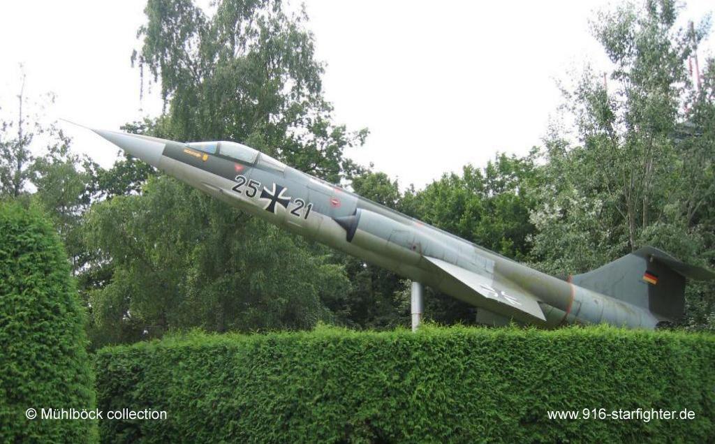 F-104G 25+21 with EADS at Manching 2006 F-104G, construction number 683D-8295, company model 683-10-19, built by Fokker manufactured by North Group (ARGE-Nord); Fokker factory construction number 10745 first flight September 3, 1964 coded KG+395 in Fighterbomber version; camouflage scheme "Norm 62" according tech order "TA-196" acceptance date November 13, 1964 by BABwFokker DB+116 JaboG 32 at Lechfeld AB delivery date on January 19, 1965 IRAN at SABCA on January 24, 1967 with 294 flight hours, back to JaboG 32 on July 12, 1967 25+21 heavily damaged on July 28, 1971 after landing at Decimomannu AB due to a broken main landing gear the aircraft went into the grass, pilot was unhurt, damage was beyond economical repair (DBR); written off struck off charge order (AVA) August 26, 1971, stored at LVR 1 on November 25, 1071 coded "MBB" at MBB Manching April 17, 1975; "MBB" markings were replaced by serial "21+04" in the late 80s in September 1994 however they changed to the correct serial "25+21" and the camouflage scheme "Norm 62" according tech order "TA-196" displayed at EADS Manching near gate, 2002 noted taken down and stored at Manching on March 25, 2008 noted; stored inside shelter at Manching in June 2010 and June 2013 noted stored (in shelter 1) December 2017 last noted; February 9, 2018 to Niederalteich for restoration, owned by Josef Voggenreiter March 2024 noted. copyright © Peter Mühlböck25+21 F-104G "MBB" cn 8295 MBB Manching, Germany, July 20, 1983
