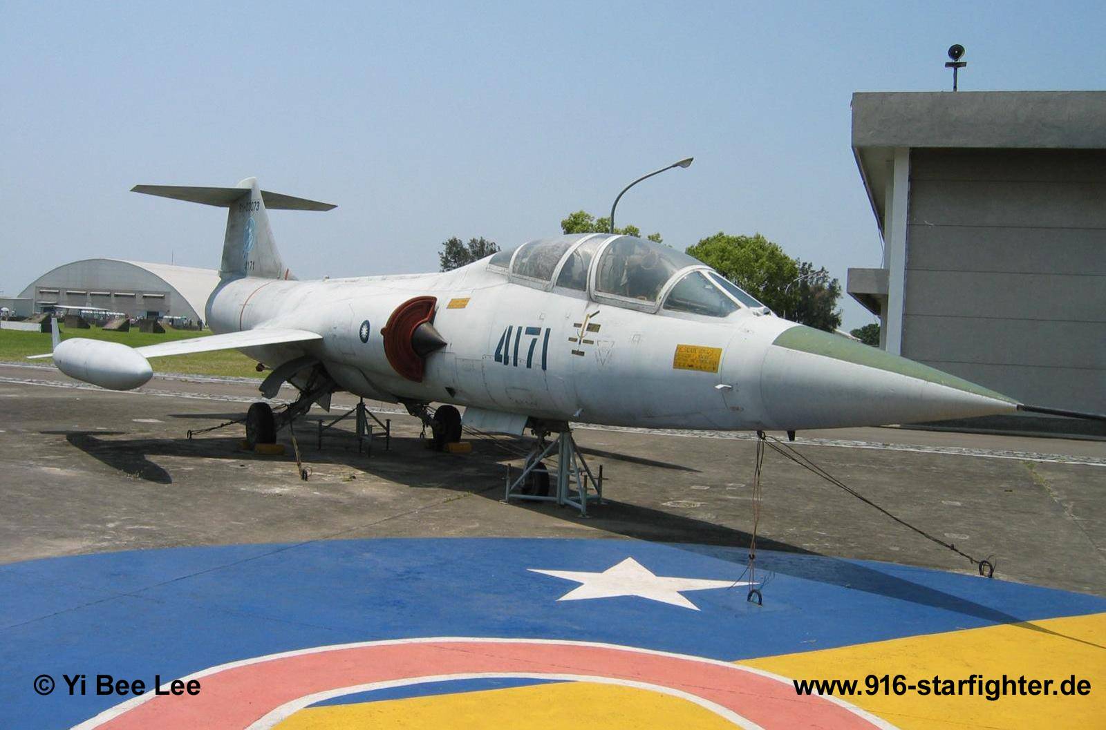 TF-104G "4171", ex 61-3073 preserved at Hsinchu AB, Taiwan with 11 AG marks in 2008 TF-104G, construction number 583D-5744, company model 583-10-20, US serial number 61-3073, built by Lockheed manufactured by Group USA (ARGE-USA); assembly at Lockheed-Palmdale for Germany; first flight 1963 coded with US serial number "61-3073"operated at Luke AFB by the 4510 CCTW coded 13073; German shadow serial number 2742, never used for registration) in USAF Silver-finish colors 2.970 flight hours in May 1977; long term storage in August 1979; struck off charge order (AVA) January 24, 1983; sold to USAF in 1983 with "Phase I" lot