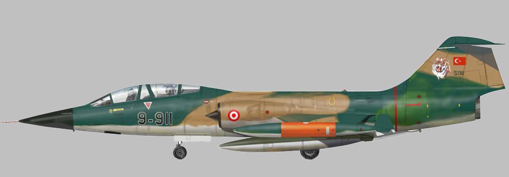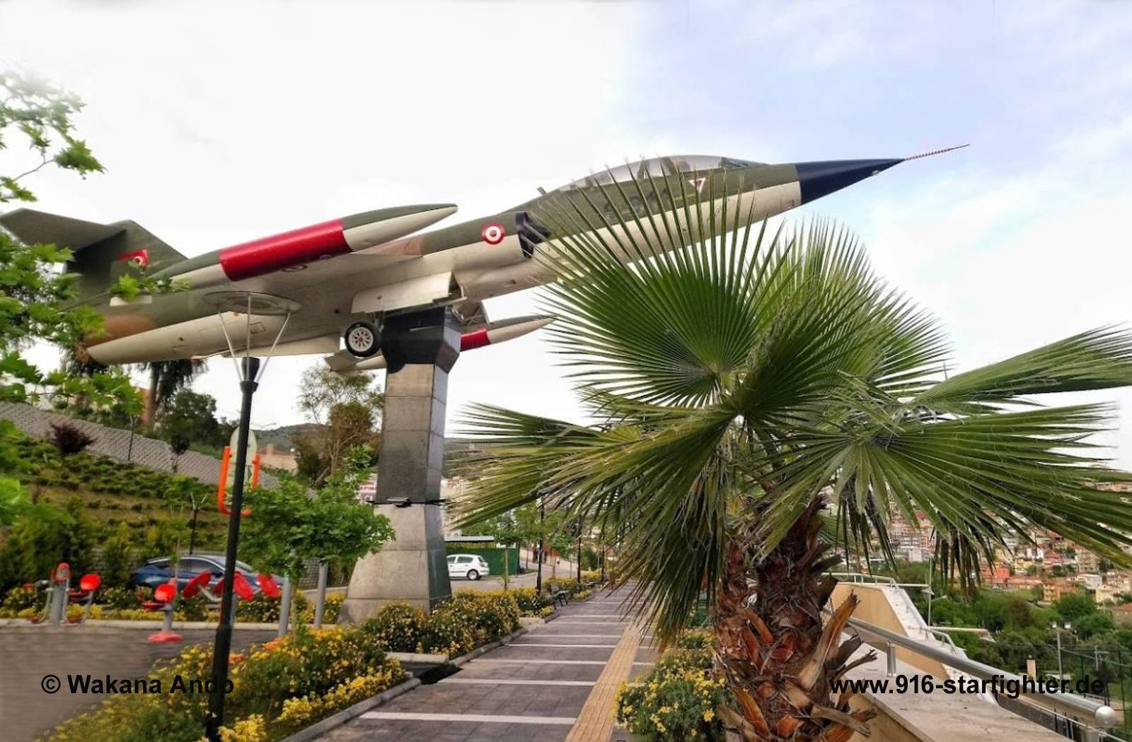 TF-104G "8-911", ex 27+82 displayed in the "75th Year Turkish World Park" in Izmir Çigli 2019 TF-104G, construction number 583F-5911, company model 583-10-20, built by Lockheed manufactured by Lockheed and Messerschmitt (ARGE-Süd) according contract lot 3; fuselage assembled at Messerschmitt-Augsburg, wings manufactured at Messerschmitt-Manching ARGE-Süd parts (fuselage, wings and tail) airlifted to USA May 10, 1965 with a Canadair CL-44D airfreighter of "Flying Tiger Line" at Lockheed-Burbank assembled and test flights at Palmdale coded KF+211 in 1965 acceptance date November 16, 1965 by BABwLockheed; airlifted to Avio Diepen at Ypenburg, Netherlands on October 11, 1965 for reassembly camouflage scheme "Norm 62" according tech order "TA-196" DB+371 JaboG 32 at Lechfeld AB delivery date on November 19, 1965; NATO exercise "Tactical Weapons Meet" 1967 at RAFG Wildenrath 16 till 30 June 1967 27+82 ErpSt 61 at Manching AB on November 15, 1982; withdrawn from use at LwSchleuse 11 on October 29, 1984 with 2.782 flight hours; struck off charge order (AVA) October 19, 1984MAP (Military Assistance Program) to Turkish Air Force (TuAF serial number 65-5911) on January 22, 1985 coded as "4-911"; with 142 Filo of 4 Wing at Murted AB 1987 at Rimini AB (LIPR) July 1987 with 141 Filo; "9-911" at 9 Wing with 192 Filo at Balikesir AB in 1989; Tiger Meet 91 at IAT Fairford in tiger marks coded "8-911" of 181 Filo on March 13, 1992 at Diyarbakir AB; February 1, 1994 with 182 Filo last noted; withdrawn from use June 20, 1994 at Diyarbakir AB preserved as display on pole in "Turkish World Park" in Izmir Çigli, Egekent district, October 2013 first noted; October 2016 last noted; October 2017 stored for restoration September 2018 on pole in the "75th Year Turkish World Park"; display October 2021 last noted October 14, 2022 seen at new location at Çigli Municipality Astronomy Aviation and Space Campus; April 2024 last noted. copyright © Wakana Ando
