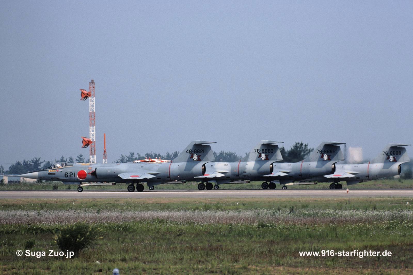F-104J "621" 203 Hikotai (squadron) with "2-tone grey" ACM meeting camouflage scheme in August 1982 at Nyutabaru AB F-104J, construction number 683B-3121, model 683-07-14, JASDF serial number 46-8621, built by MitsubishiMitsubishi built; delivery date October 28, 1964; first unit 201 squadron of 2 Wing; from 1968 5th Kokudan at Nyuutabaru AB; from 1970 to 203 Hikotai at Chitose until about 1982 621 during ACM meet 1980 carrying a light blue shaded scheme around middle fuselage; ACM meet 1981 carrying a "2-tone grey" shaded color scheme on top and aft fuselage with 207 squadron of 83 AG 1986 withdrawn from use; then converted as UF-104JA drone, coded as 46-3621 shot down at firing range located near Iwo Jima Island March 13, 1996. copyright © Suga Zuo