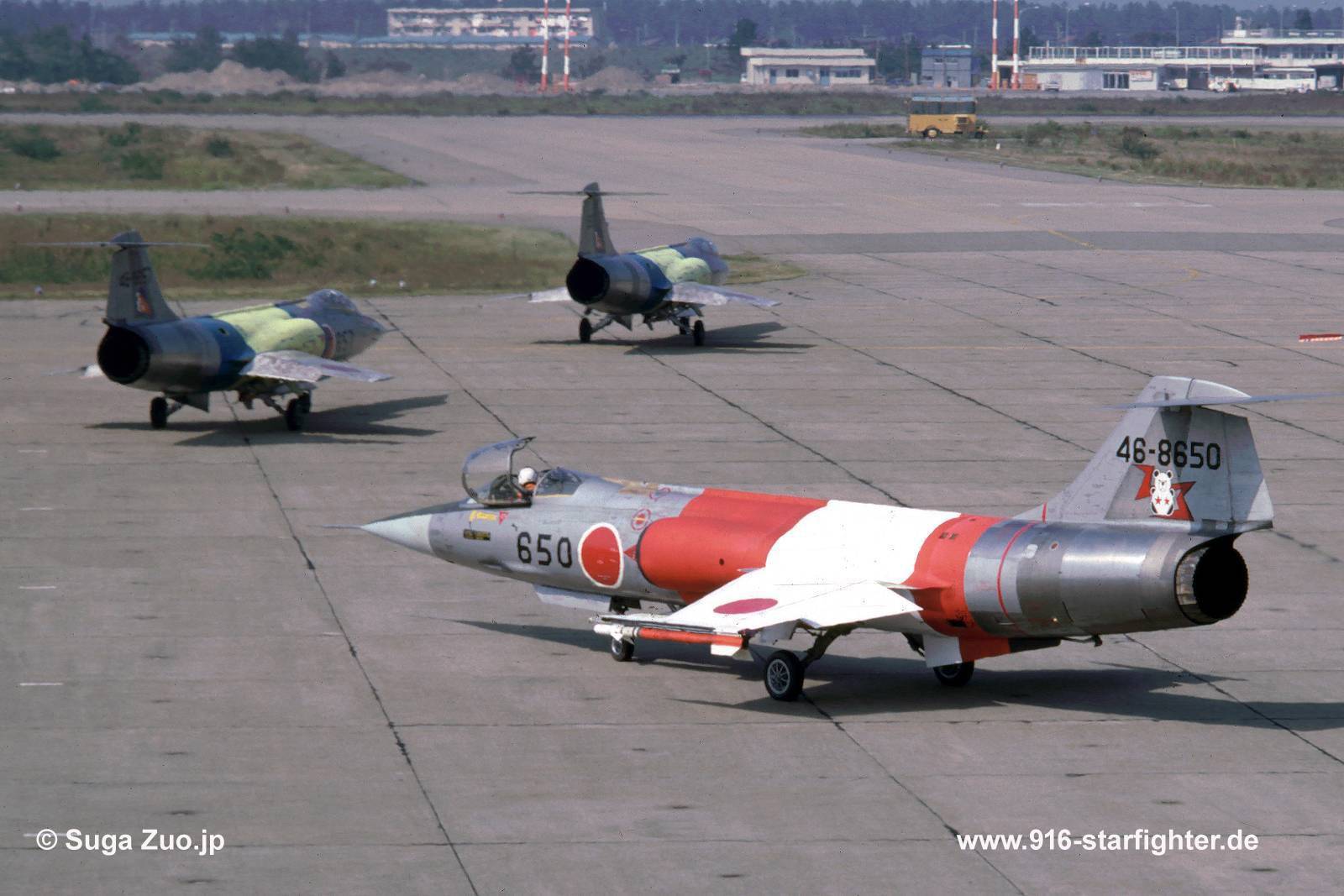 F-104J "650" (46-8650) 203 Hikotai (squadron) of 2 Wing JASDF 1979 wearing an ACM colorscheme at Chitose AB F-104J, construction number 683B-3150, model 583-07-14, serial number 46-8650, built by MitsubishiJapanese Air Self Defense Forces (JASDF) Order of Operations delivery date December 9, 1964; 1964 first assigned to 203 Hikotai of 2 Kokudan at Chitose AB; about 1971 assigned to 206 Hikotai of 7 Kokudan at Hyakuri AB (seen 1973) 1978 again assigned to 203 Hikotai of 2 Kokudan; (seen 1979 wearing ACM color scheme) at Chitose AB; 1983 withdrawn from use and ferried to 2nd Supply Depot storage 1983 at Gifu AB last noted; scrapped. copyright © Suga Zuo