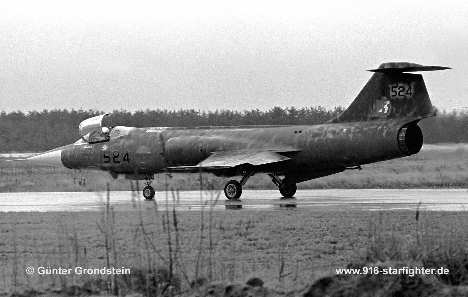 F-104J "524" (36-8516) 205th Hikotai (squadron) of 6th Wing JASDF carrying a "oliv darb" ACM colorscheme at Komatsu AB in November 1981 F-104J, construction number 683B-3024, model 583-07-14, serial number 36-8524, built by MitsubishiJapanese Air Self Defense Forces (JASDF) Order of Operations Mitsubishi built; delivery date April 7, 1963; assigned to 201st Hikotai at Chitose; later assigned to 7th Kokudan at Hyakuri; 1972 assigned to 205th Hikotai 6th Kokudan at Komatsu ACM meeting 1980 205th Hikotai 524 with Oliv-drab color scheme; from 1981 assigned to 202nd Hikotai of 5th Kokudan; December 1982 202nd Hikotai disbanded assigned to 204th Hikotai some months later, ferried to 2nd Supply Depot and withdrawn from use 1983; dump 1983, scrapped. copyright © Günter Grondstein collection