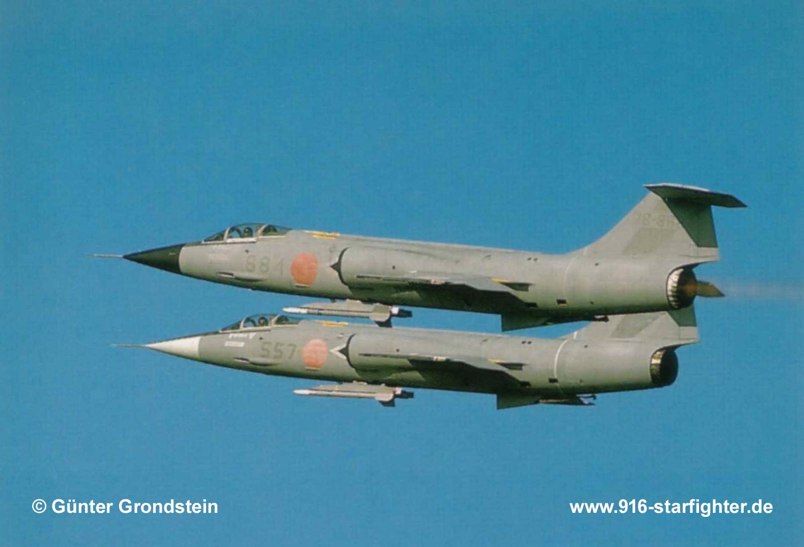 F-104J "557" (36-8557) 204th Hikotai (squadron) of 5th Wing in overall "toned down" scheme, covering also squadron markings for ACM meeting 1983 F-104J, construction number 683B-3057, model 583-07-14, serial number 36-8557, built by MitsubishiJapanese Air Self Defense Forces (JASDF) Order of Operations Mitsubishi built; delivery date November 13, 1963; first assigned to 204 Hikotai of 5 Kokudan at Nyuutabaru; for about five years used for F-104 aircraft conversion training from about 1969 206 Hikotai at Hyakuri AB; from 1974 204 Hikotai for the second time, also shared by 202 Hikotai after 202 Hikotai converted from F-104 to F-15 with 204 Hikotai for third time; 204 Hikotai ACM meeting in autumn 1983 carrying a 2-tone light grey camouflage scheme June 1984 207 Hikotai of 83 Kokudan at Naha AB; 1985 withdrawn from use and stored at Gifu AB; scrapped. copyright © Günter Grondstein collection