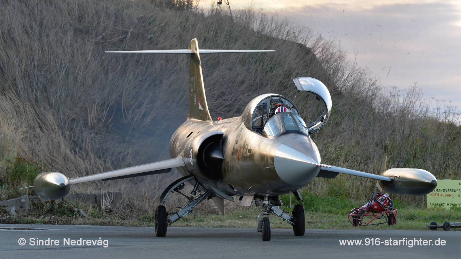 CF-104D "LN-STF" during Preflight Checks for the first flight at Bodo AB on September 28, 2016 CF-104D, Lockheed model 583-04-15, Lockheed construction number 583A-5307, RCAF serial number 12637, Mk 1 (Dual Training Aircraft), built by Lockheed Mk 1 (Dual Training Aircraft) May 17, 1962 to Cold Lake; September 11, 1972 to SAL; to Norway July 15, 1973 as "637" with 1.392 hoursoperated by the 334 squadron; last flight and withdrawn from use March 14, 1983, used as ABDR airframe at Bodø AB, as "637" at Bodo Museum (Norsk Luftfartsmuseum) 2001 Friday September 13, 2002 CF-104D 637 was handed over from The Norwegian Aviation Museum to the resource group. The event took place at the museum. In the chill full, windy climate of northern Norway, the plane was towed out from the museum-hall and brought back to its old habitat, Bodø Airbase, 2006 last noted stored at Bodø AB evaluated for future airworthiness and flying; registered LN-STF CF-104D 104637 became the hobby for a lot of old F-104 related retired and enthusiast personnel at Bodo Air Base. September 28, 2016, really a day to remember for all time, again an F-104 took off from European ground. It was 33,5 years ago that CF-104D 104637 shut off its engine to start an unsure future. June 7, 2017 LN-STF made its 2nd test flight from Bodo, since it was withdrawn from use by the Norwegian Air Force on April 1, 1983. copyright © Sindre Nedrevåg