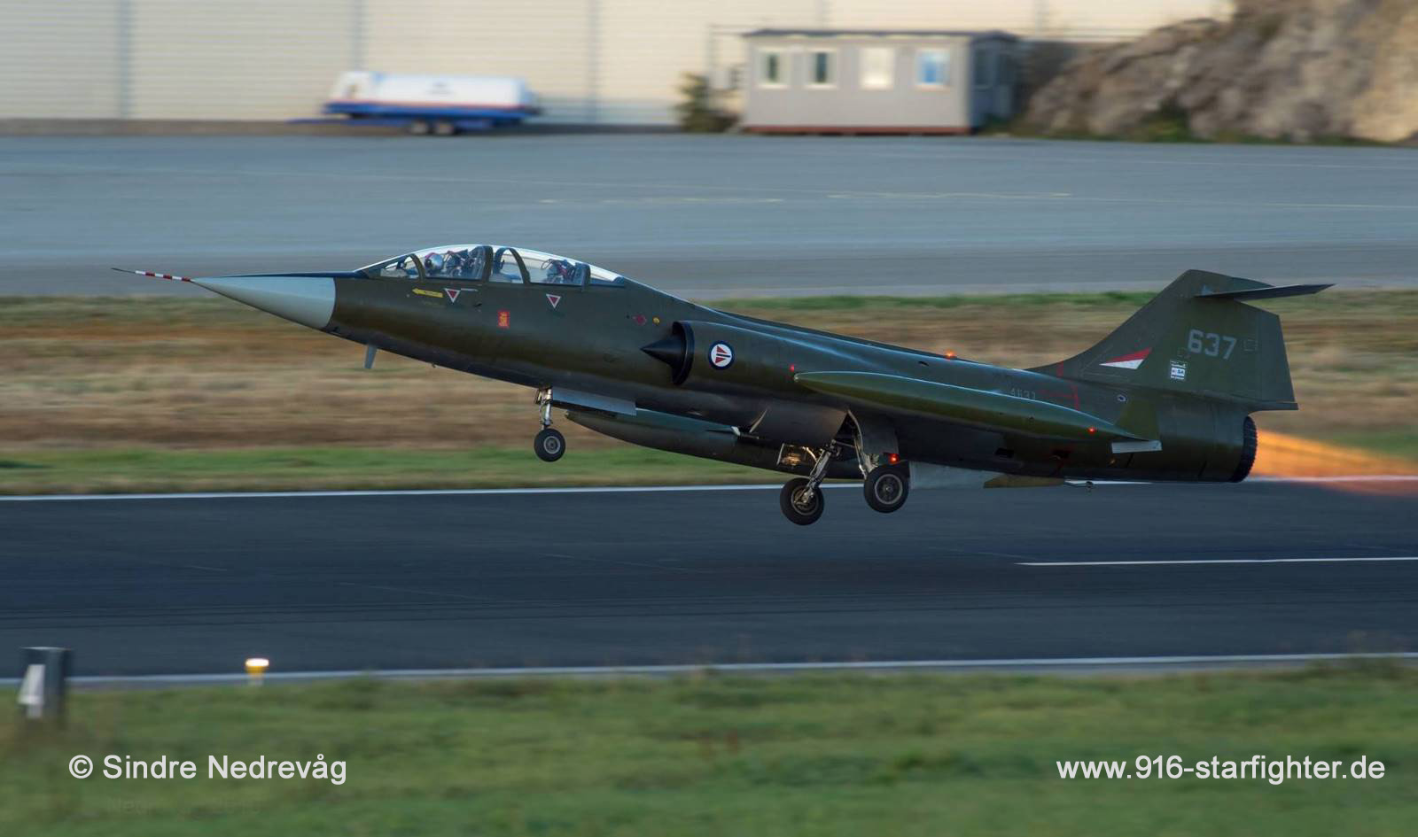 CF-104D "LN-STF" during lift-off on the first flight at Bodo AB on September 28, 2016 CF-104D, Lockheed model 583-04-15, Lockheed construction number 583A-5307, RCAF serial number 12637, Mk 1 (Dual Training Aircraft), built by Lockheed KNL units operating the Starfighter: