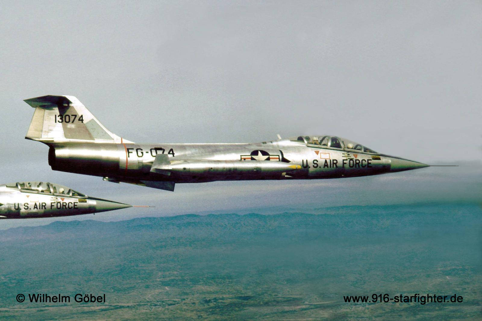 TF-104G "FG-074" (61-3074) in formation 1964 1 April 1964. The 4540th Combat Crew Training Group activated as a subordinate to the wing to conduct German Air Force F-104 training. The Group Commander, Col J.D. Collingsworth, was an equal to the Deputy Commander for Operations. The 4518th Combat Crew Training Squadron was assigned to the group. 1 April 1964. First F-104 student sortie flown under USAF/German Air Force F-104 Starfighter Foreign Military Sales Program. copyright © Wilhelm Göbel