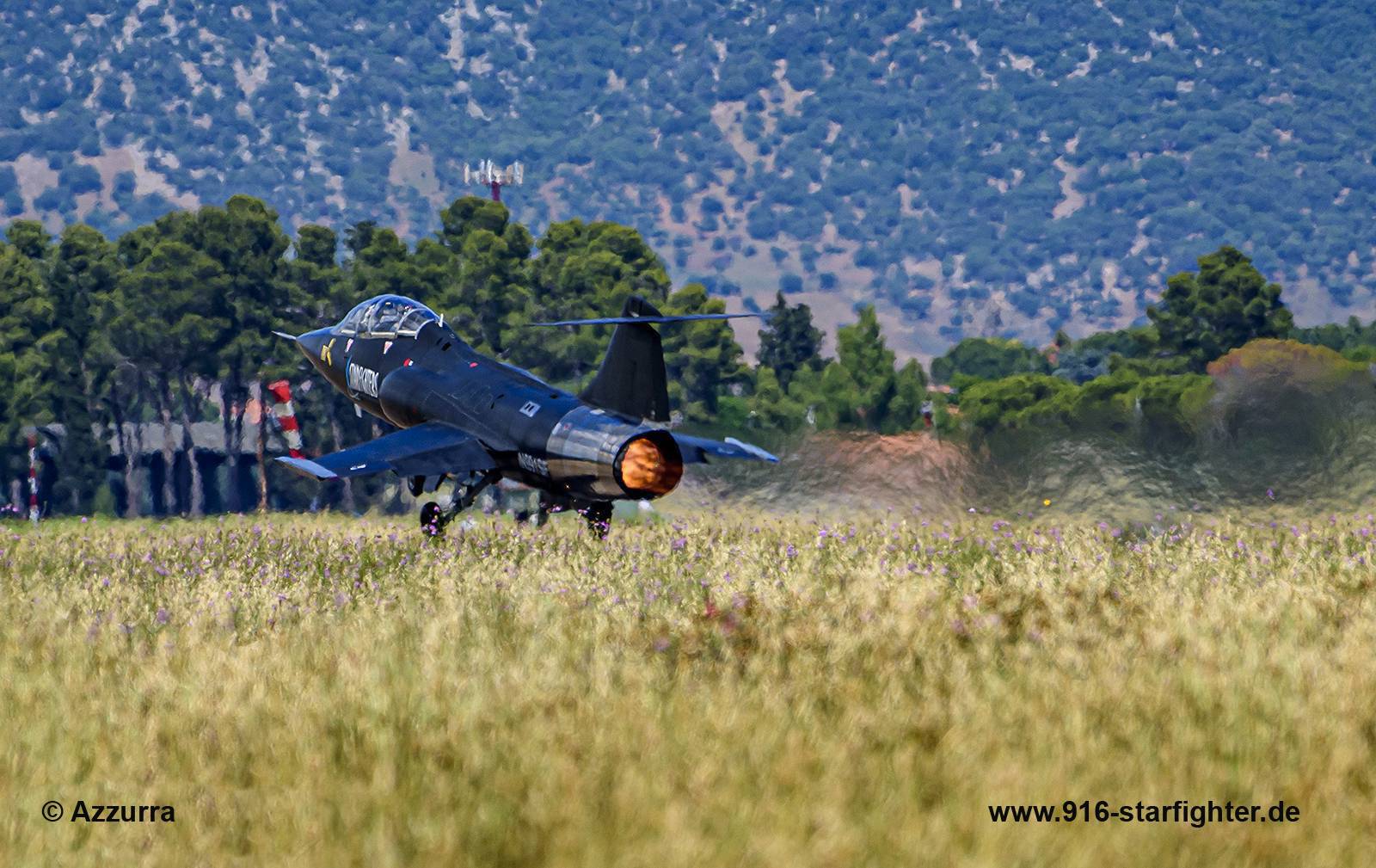 TF-104G-M "N991SF" "Starfighters" taking-off with Max power during tests fights at Grosseto June 10, 2023 TF-104G, MM54258, construction number 583H-5209, model 583-10-20, built by Lockheed The Aeronautica Militare Italiana (Italian Air Force) celebrated the 100th anniversary of its founding as an independent Air Arm on weekend June 16th/19th, 2023 copyright © Azzurra