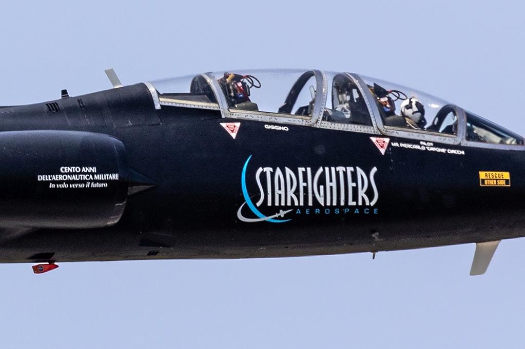 TF-104G-M "N991SF" "Starfighters" at the AMI 100th anniversary at Pratica di Mare AB June 18, 2023 TF-104G, MM54258, construction number 583H-5209, model 583-10-20, built by Lockheed For this occasion the Aeronautica Militare collaborated with Florida-based Starfighters Aerospace to bring one of that company’s airworthy, Italian-built F-104s back to the nation of its birth. Former Italian Air Force TF-104G MM54258, nicknamed "Black Beauty", was shipped from Cape Canaveral to Grosseto Air Base, home to 4° Stormo (4th Wing), and the one-time base of this very airframe. Starfighter Aerospace personnel reassembled the airframe, in cooperation with a former Starfighter crew chief. On Tuesday June 13th, 2023 Black Beauty flew in Italian skies almost twenty years since the type’s last flight over the nation. After flight testing was complete, PierCarlo Ciacchi flew the TF-104G to Pratica di Mare to join in this weekend’s festivities. copyright © Roger Seroo