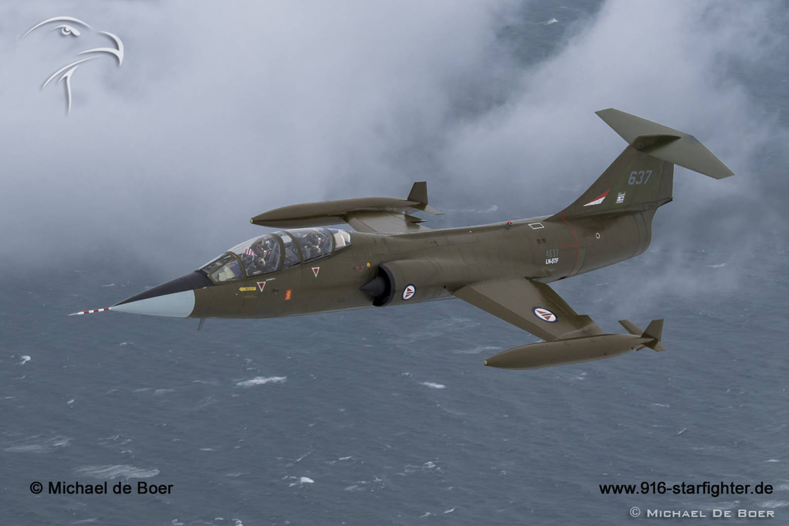 CF-104D "LN-STF" in "Close Formation" CF-104D, Lockheed model 583-04-15, Lockheed construction number 583A-5307, RCAF serial number 12637, Mk 1 (Dual Training Aircraft), built by Lockheed copyright © Michael de Boer