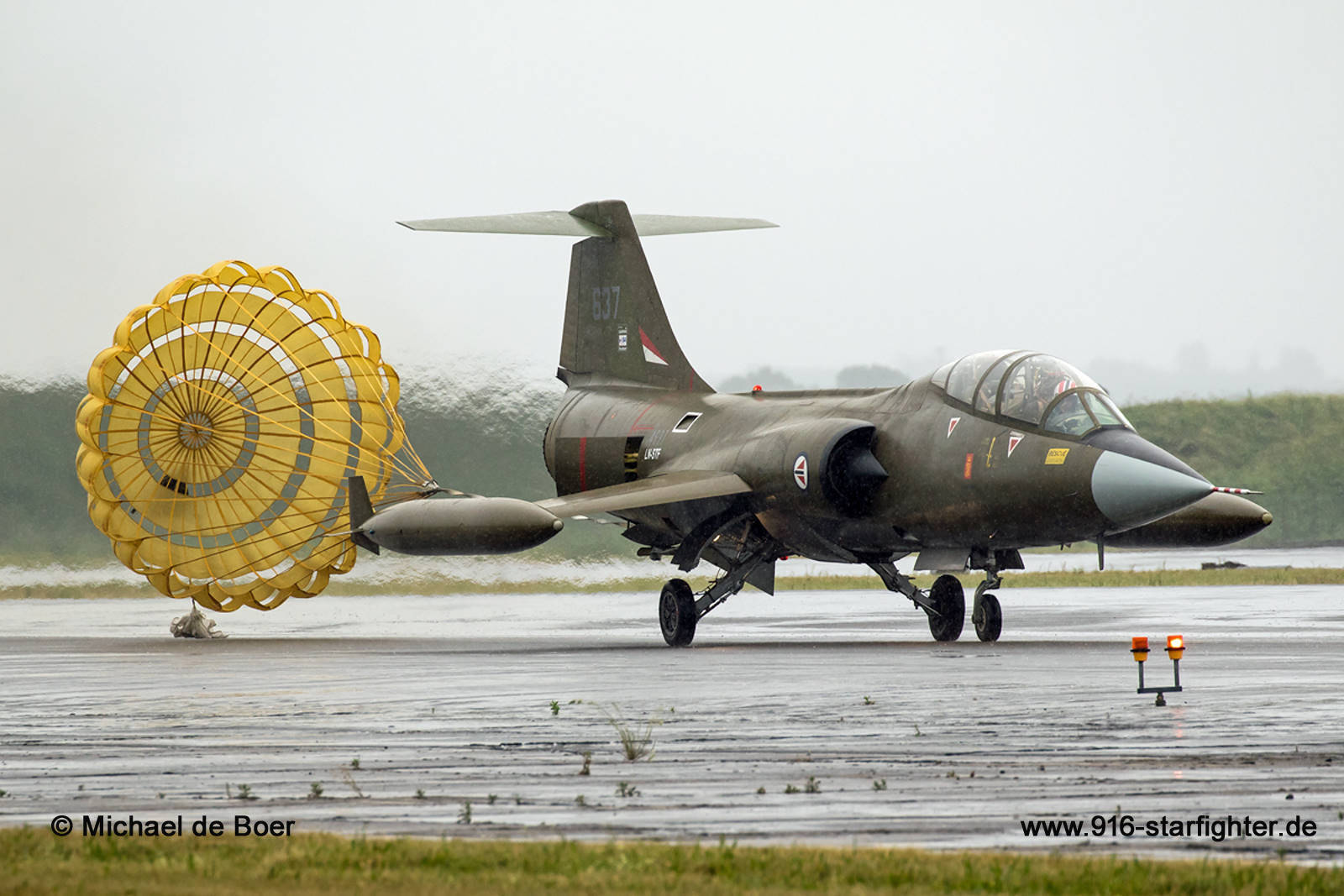 CF-104D "LN-STF" "Full Stop" with the dragchute CF-104D, Lockheed model 583-04-15, Lockheed construction number 583A-5307, RCAF serial number 12637, Mk 1 (Dual Training Aircraft), built by Lockheed copyright © Michael de Boer