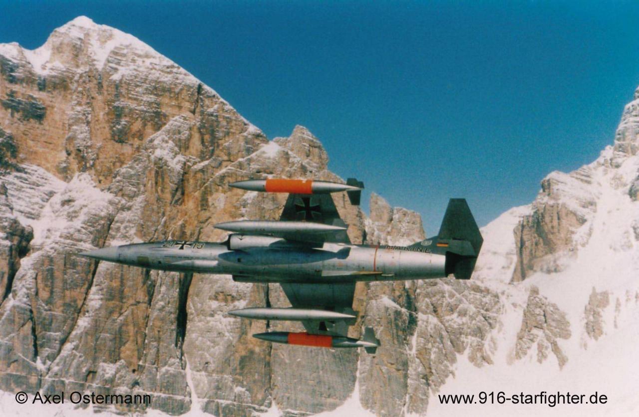 RF-104G "21+13" of MFG 2 passing though the Dolomites in South Tyrol All pictures are from the book: "Vikings for Take Off" Picture taken by Axel Ostermann on flights around Europe I am very grateful that I can show all these wonderful pictures on my website and keep those moments alive for decades to come