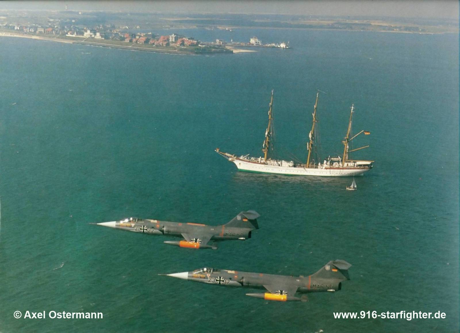 RF-104G 21+22 of MFG 2 passing sailing vessel "Großherzogin Elisabeth" 1986 Picture taken by Axel Ostermann