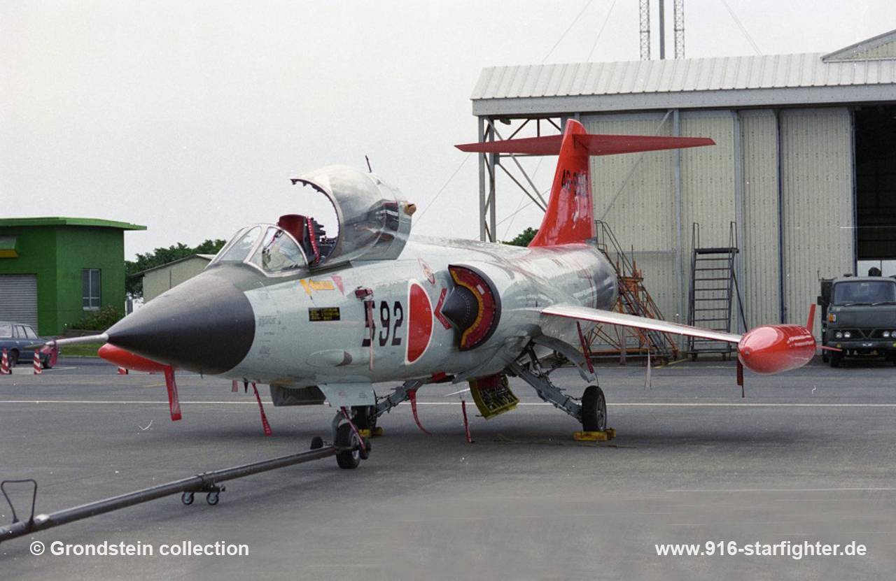 UF-104J "592" (piloted drone prototype) tested by ADTW at Iwo Jima island F-104J, construction number 683B-3092, model 683-07-14, JASDF serial number 46-8592, built by MitsubishiMitsubishi assembled aircraft; delivery date June 4, 1964; first assigned to 7 Koukudan at Hyakuri AB after first IRAN stored until late 1970s, details unknown 1977 203 Hikotai at Chitose; after next IRAN added ECM ability; until October 1983 203 Hikotai from October 1983 207 Hikotai until 1984; next year delivered to 2nd Supply Depot Later converted as first UF-104J, tested at Iwo Jima, accomplished mission. EF-104J (modified as ECM version to carry Electronic Countermeasures Pod ALQ-4) QF-104J (piloted drone prototype) tested by ADTW target drone as 46-8592 shot down at firing range located near Iwo Jima island on March 10, 1997. After the retirement of the JASDF Starfighter, trials were started in 1990 by Mitsubishi, in conjunction with Honeywell and Motorola, to convert 2 F-104J as prototype remotely-piloted drones for similar missile development trials. By late 1991, the 2 UF-104J had successfully completed from the island of Iwo Jima 147 manned and unmanned flights, the latter being controlled by telemetry from a complete Starfighter cockpit section on the ground. An initial bath of six more QF-104J was then similar modified. Two F-104J were modified to QF-104J experimental drones and tested by ADTW. After that, a total of 14 Starfighter converted to UF-104JA target drone and all of them were shot down at a firing range located near Iwo-Jima island. copyright © Grondstein collection
