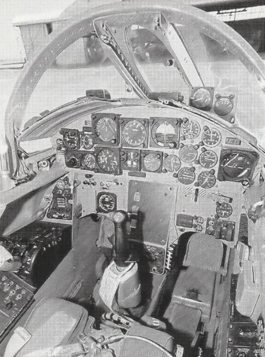 UF-104JA "527" (recoded 36-3527) at Iwo Jima island F-104J, construction number 683B-3027, model 683-07-14, JASDF serial number 36-8527, built by Mitsubishi Cockpit of the UF-104J. The basic layout remains unchanged, but the radar unit in the center pedestal area was removed and a new control panel for the UAV system was installed, with a new radio altimeter next to it. copyright © Grondstein collection
