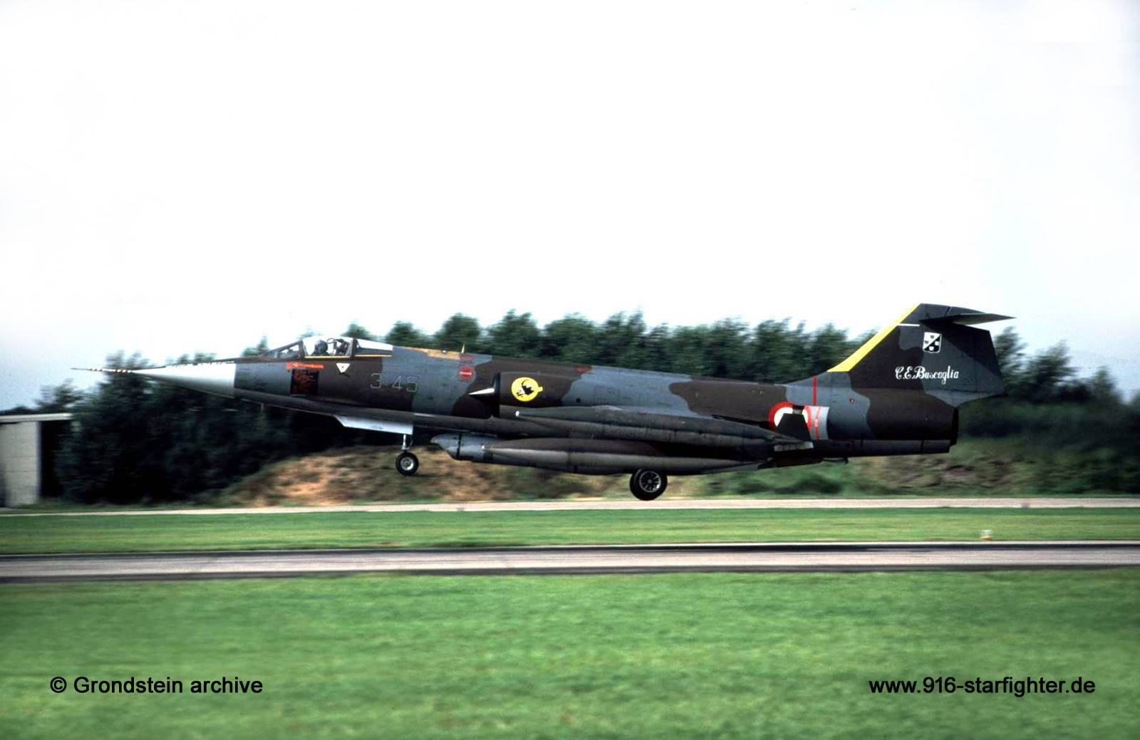 F-104G "3-45" 28°Gruppo of 3°Stormo for exercise "Ample Gain" at Volkel AB in September 1987 F-104G, construction number 683D-6576, serial number MM6576, model 683-10-19, built by FIATdelivery date AMI 8.5.1964; bare metal color scheme; delivery date RSV 311°Gruppo 20.5.1964; delivery date 9°Gruppo 31.7.1964, R3 damage 6.6.1965 FIAT for repair 7.6.1965- 22.7.1966; delivery date 10°Gruppo 22.7.1966, 9-01 07.1966-22.5.1968; IRAN 22.5.1968-20.12.1968; delivery date 9°Gruppo 20.12.1968 delivery date 10°Gruppo at Grazzanise AB 13.2.1969, 9-06 02.1969-24.10.1972 July 1970 exchange with Royal Air Force 11 squadron flying the Lightning fighter aircraft from homebase Leuchars; IRAN from 24.10.1972 RF-104G modification 3-44 3°Stormo 132°Gruppo 07.1974-14.7.1975 November 1974 squadron exchange took place between the Royal Air Force 41 squadron, based at RAF Coningsby and the Italian Air Force 132°Gruppo, based at Villafranca 3-04 3°Stormo 18°Gruppo 21.4.1976-24.3.1977; IRAN 24.3.1977-28.2.1978; delivery date 154°Gruppo 28.2.1978; delivery date 132°Gruppo 27.2.1979, 3-11 10.4.1979-08.1981 IRAN 1.6.1981-22.6.1982; delivery date 132°Gruppo 22.6.1982, 3-13 31.5.1983-17.6.1986; IRAN from 17.6.1986; 3-45 7.8.1987-15.4.1992 Operation "Ace Guard" Erhac AB, Turkey 1991 on loan to 28°Gruppo; total 3.756 flight hours, withdrawn from use Grosseto 21.9.1992-9.5.2002 dump south of 20°Gruppo buildings 2003 noted; last noted dump Cervia AB on 19.3.2004; scrapped. copyright © Günter Grondstein