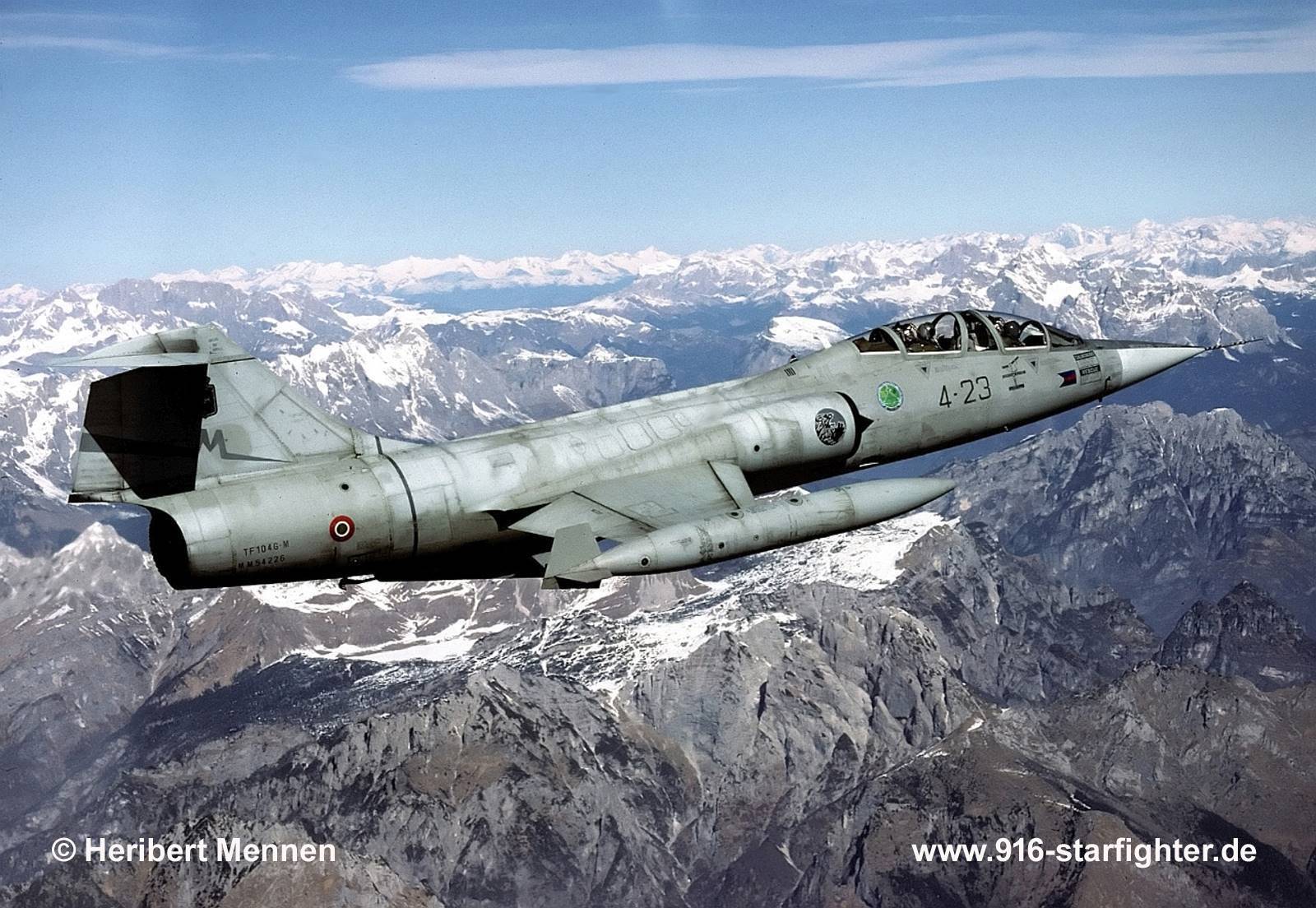 TF-104G-M "4-23" 20°Gruppo Addestramento Operativo (OCU) carrying the "Squadron Leader Insignia" over the Alps 2000