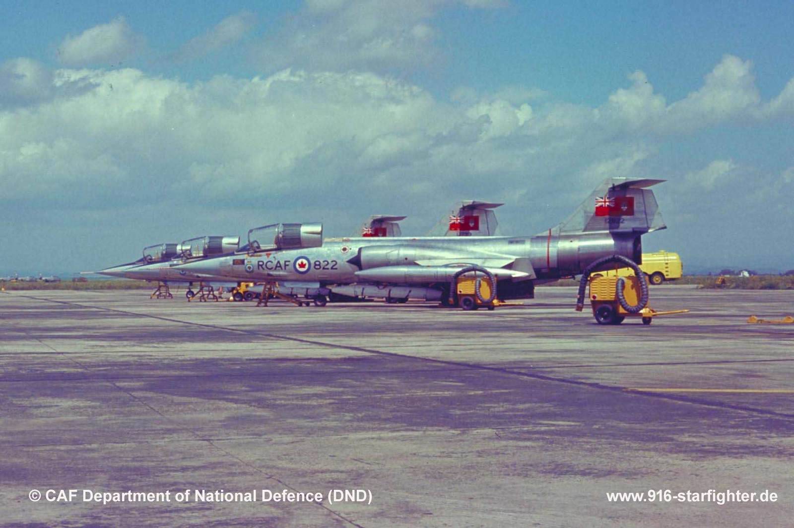 CF-104 "822" (12822) of 3 Wing at Decimomannu AB during a Gunnery Camp CF-104, Canadair model CL-90, Lockheed model 683-04-12, Canadair construction number 683A-1122, RCAF serial number 12822, built by Canadairfirst flight August 17, 1962; taken on service on October 2, 1962 delivery date to RCAF coded 12822 on February 15, 1963; first unit 1 Air Division, Europe (1 AD) reserialed as 104822 effective June 1970; "Whisky Four" demonstration team Aviano Open Day July 1981 officially withdrawn from use in April 1984 with 421 squadron of 1 CAG; stored at CFB Baden-Sollingen, (date unknown); to training aid "848C" on May 13, 1985 to ABDR training aid (number unknown); last noted was somewhere in 1990 when it was seen BDRT aircraft "848C" at CFB Sollingen withdrawn from use in March 1994; to controlled cannibalization (date unknown); scrapped. copyright @ CAF DND