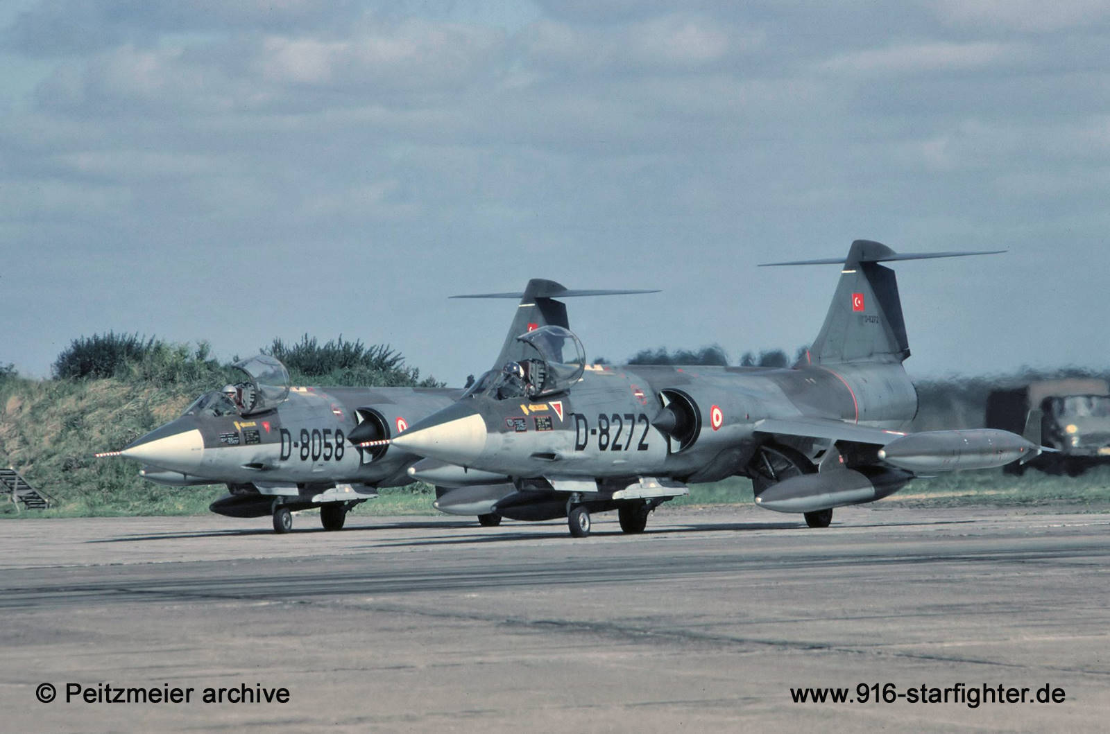 F-104G "D-8272" RNLAF ready for delivery flight to Turkey on August 25, 1982 F-104G, construction number 683D-8272, model 683-10-19, built by Fokkermanufactured by North Group (ARGE-Nord) in AWX fighter version; Fokker factory construction number 10722 KG-372 delivery date at Fokker July 30, 1964 in AWX (All Weather Fighter) version; D-8272 taken on charge December 9, 1964; 322 squadron July 1964-1967 322/323 squadrons pool 1967-August 1980; 1982 acceptance flights by TuAF