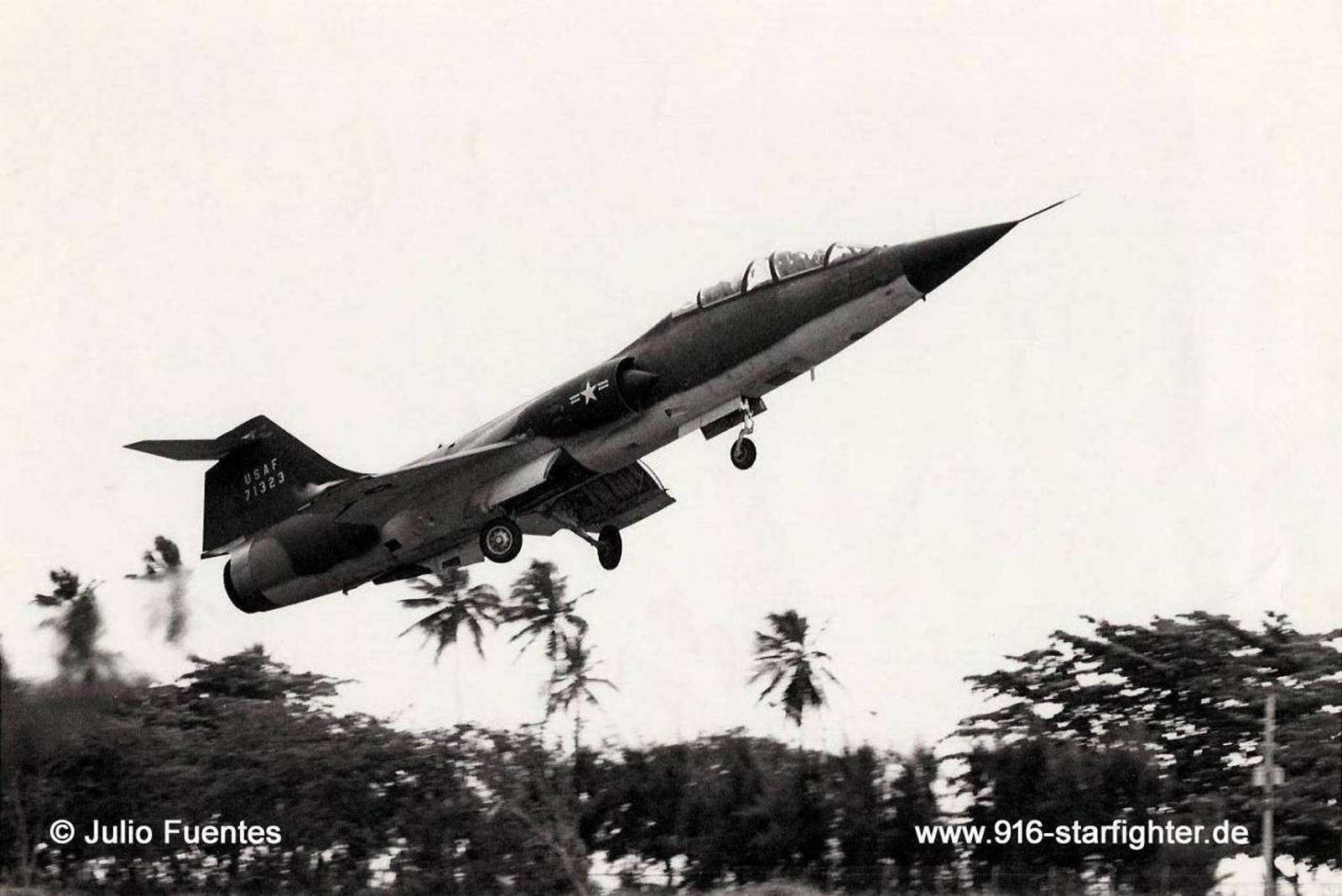 F-104D "71323" (57-1323) 198th Tactical Fighter Squadron of PR ANG at San Juan IAP, PR F-104D, construction number 283-5035, model 383-04-06, US serial number 57-1323, built by Lockheeddelivery date to the USAF April 10, 1959; 479th TFW March 1959-June 1967, AF Proving Ground Center (AF Systems Command), Eglin AFB, FL June 1967-August 1972 AF Armament Development & Test Center (AFSC), Eglin AFB August 1970-August 1972; coded "0-71323" at Eglin AFB in grey camouflage scheme to 198th TFS of 156th Tactical Fighter Group (PR Air National Guard), San Juan IAP, PR on August 16, 1972 MASDC as "FB054" on August 19, 1975 (fully camouflaged), depart January 20, 1979 at Pima Air & Space Museum, Tucson, Arizona January 20, 1979, April 8, 2006 noted; coded 71323 April 2010 noted February 2017 with PR ANG marks after restoration coded "0-71323" noted; March 2023 noted.