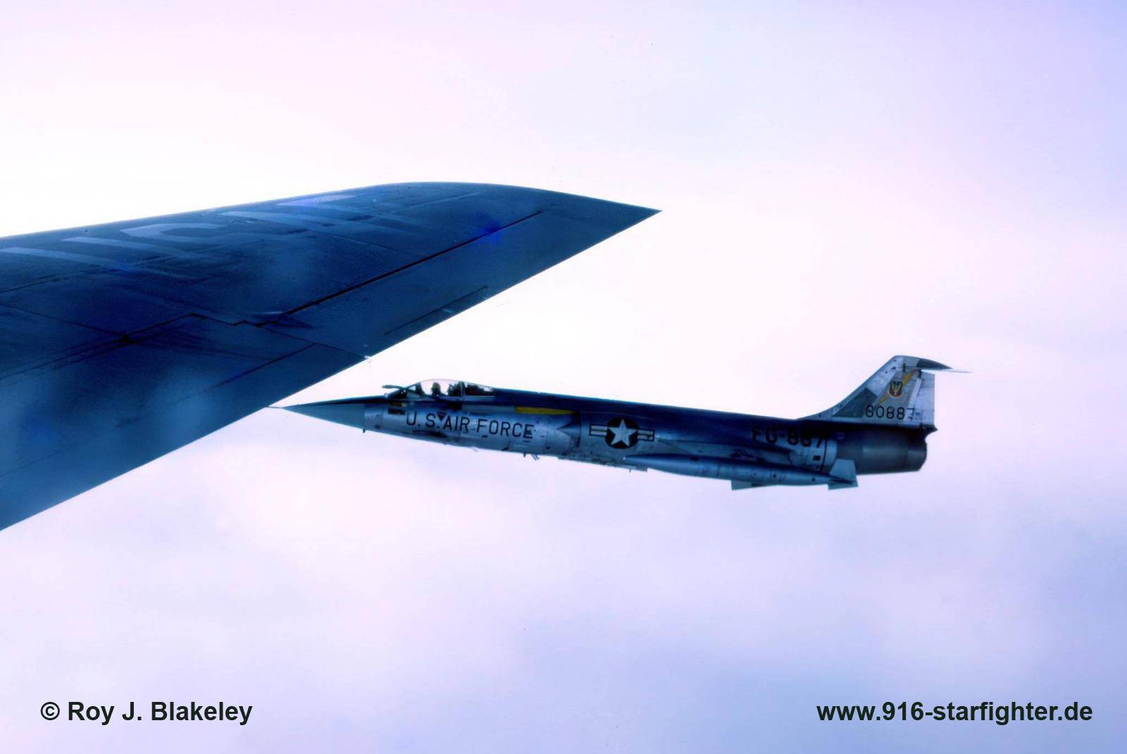 F-104C "FG-887" 436 TFS of 479 TFW in 1963 F-104C, construction number 183-1175, model 483-04-05, US serial number 56-0887, built by LockheedFG-887 USAF available August 15, 1958; delivery date October 31, 1958 to 479th TFW George AFB; 476th TFS deployment to Moron AB, Spain in 1959 435th TFS deployed to Ramstein, Germany during Berlin crisis September 19, 1961-January 22, 1962; noted with 436th TFS "The Black Aces" George AFB in December 1963 March 19, 1965 56-0887 made a barrier engagement at George AFB, CA when the drag chute failed to deploy and the right main tire blew after heavy braking. The aircraft was damaged but the pilot was not injured; crashed November 8, 1965 at Cuddeback gunnery range, written off November 8, 1965, the pilot was killed. copyright @ Roy J. Blakeley