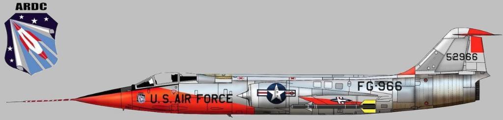 YF-104A "FG-969" (55-2969) on loan by General Electric (GE) for J-79 engine tests at Edwards AFB YF-104A, construction number 183-1015, model 183-93-02, US serial number 55-2969, built by LockheedThe initial assembly of 55-2969 was finished on August 20, 1956 and delivered to the US Air Force eleven days later. Soon after delivery the aircraft was assigned to AFFTC. As soon as it was repaired after an accident at Eglin AB it was sent to China Lake for some missile (AIM-9) testing. In 1958 it was it was selected for a record flight by Walter Irwin on May 16, 1958 from Edwards Air Force Base. This aircraft, which was one of the operational F-104A at Hamilton AB by that time with the 83rd FIS, was chosen as the bird to be used. Together with a detachment from Hamilton it was transferred to Edwards AFB temporary for the record flights. On May 16, 1958 Walter reached a speed record of 2,259 km/h (1,404 mph). Also two acceleration records were broken. The F-104 flew to 3,000 meters in 41,8 seconds and 25,000 meters in 4 minutes and 26,03 seconds. After the record breaking activities it returned back at Hamilton. To improve the poor reliability of the J-79 the company General Electric was starting a special project. For this the company got 55-2969 on loan, arriving with General Electric on August 8, 1958. It got General Electric markings and it received a partly dayglow color scheme as well as nickname "Queenie". It performed accelerated service tests on the J-79, as well as other development work before the main test in 1960. The aircraft served General Electric until August 1961 when the aircraft returned to Lockheed, Palmdale for future drone modifications. It was one of the last airplanes that still had a downward ejection seat, among other features that were common to the YF-104's. As QF-104A drone it entered the 3205th Drone Squadron in 1964. Finally the life of this aircraft ended January 26, 1971 when it was shot down by an AIM-4H missile shot from an F-4E Phantom. It was on the 25th drone mission. copyright © Mühlböck collection