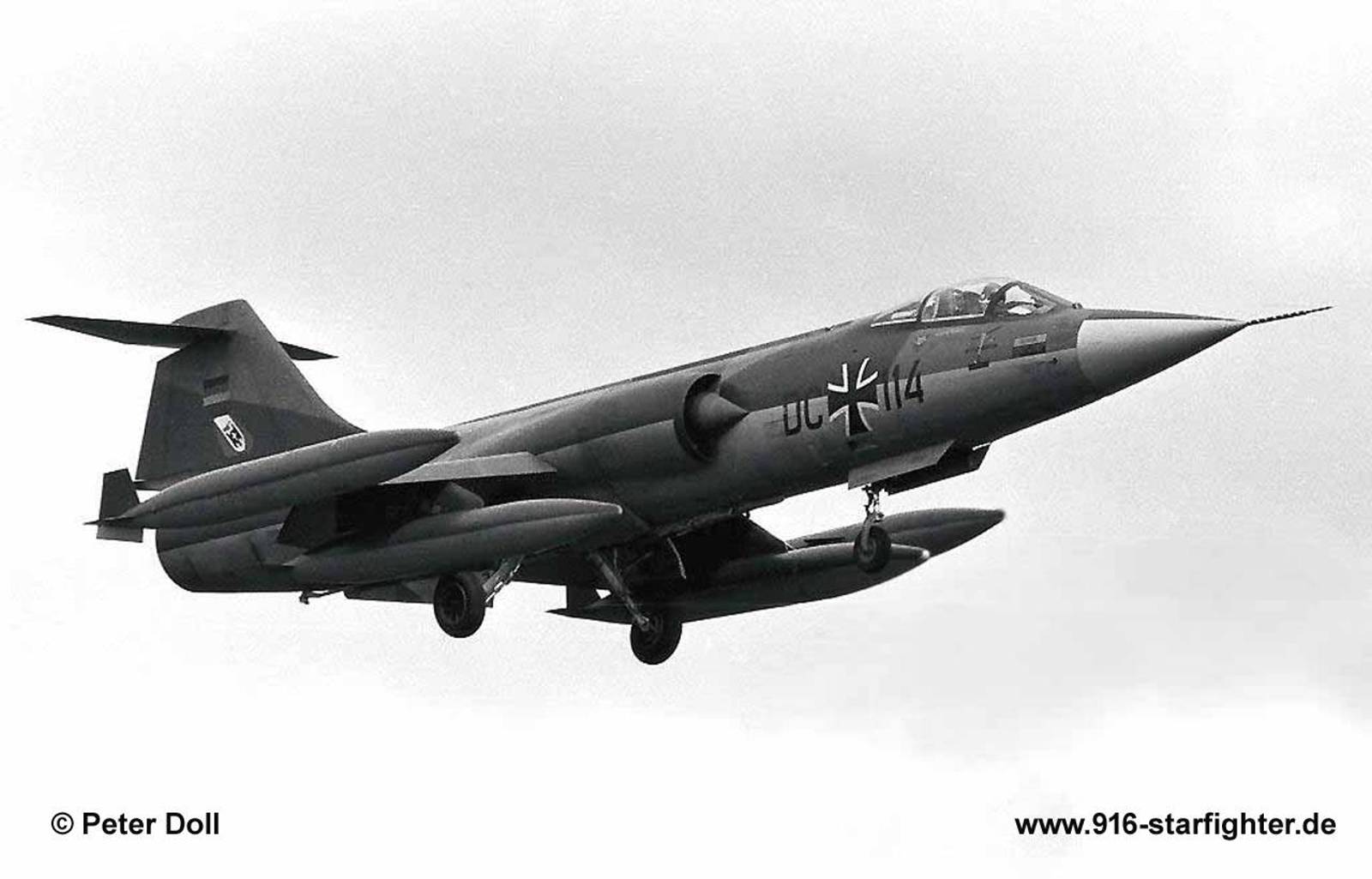 F-104G DC+114 JaboG 33 1965 F-104G, construction number 683-2070, company model 683-10-19, built by Lockheed manufactured by Group USA (ARGE-USA); Lockheed assembly in Fighterbomber version according contract lot 7 Lockheed test flights with register number coded "170" only; coded KF+145 accepted by BABwLockheed on May 26, 1962; delivery date in 1962 airlifted to Germany on June 5, 1962 in a Canadair CL-44D airfreighter of "Flying Tiger Line" with 19:40 flight hours Messerschmitt reassembly and test flight on August 1, 1962 in Silver-finish colors project "Loreley" as Fighterbomber (for JaboG 33) with Vulcan M61 20 mm machine gun installed and long range tanks as loose parts DC+114 August 30, 1962 delivery date JaboG 33 at Buchel AB; to Messerschmitt for upgrading and IRAN on May 12, 1964 camouflage scheme "Norm 62" according tech order "TA-196" in 1965, back to JaboG 33 on November 22, 1965 20+61 IRAN at SABCA on March 27, 1972, back to JaboG 33 on May 18, 1972; WaSLw 10 at Jever AB on July 2, 1975; JaboG 33 on January 10, 1983 withdrawn from use at LVR 1 on January 23, 1984; struck off charge order (AVA) December 13, 1983MAP (Military Assistance Program) with 3.418 flight hours to Turkish Air Force (TuAF serial number 62-2070) on April 10, 1984; to 142 Filo at Murted coded "4-070" in 1998 to 193 Filo of 9.AJU at Balikesir AB coded "9-070"; in June 1989 last noted, CFE cut-up July 31, 1995; scrapped. Project "Loreley": 42 Fighterbomber for the second wing designated to be converted being JaboG 33 (FBW 33) at Buchel AB. copyright © Peter Doll