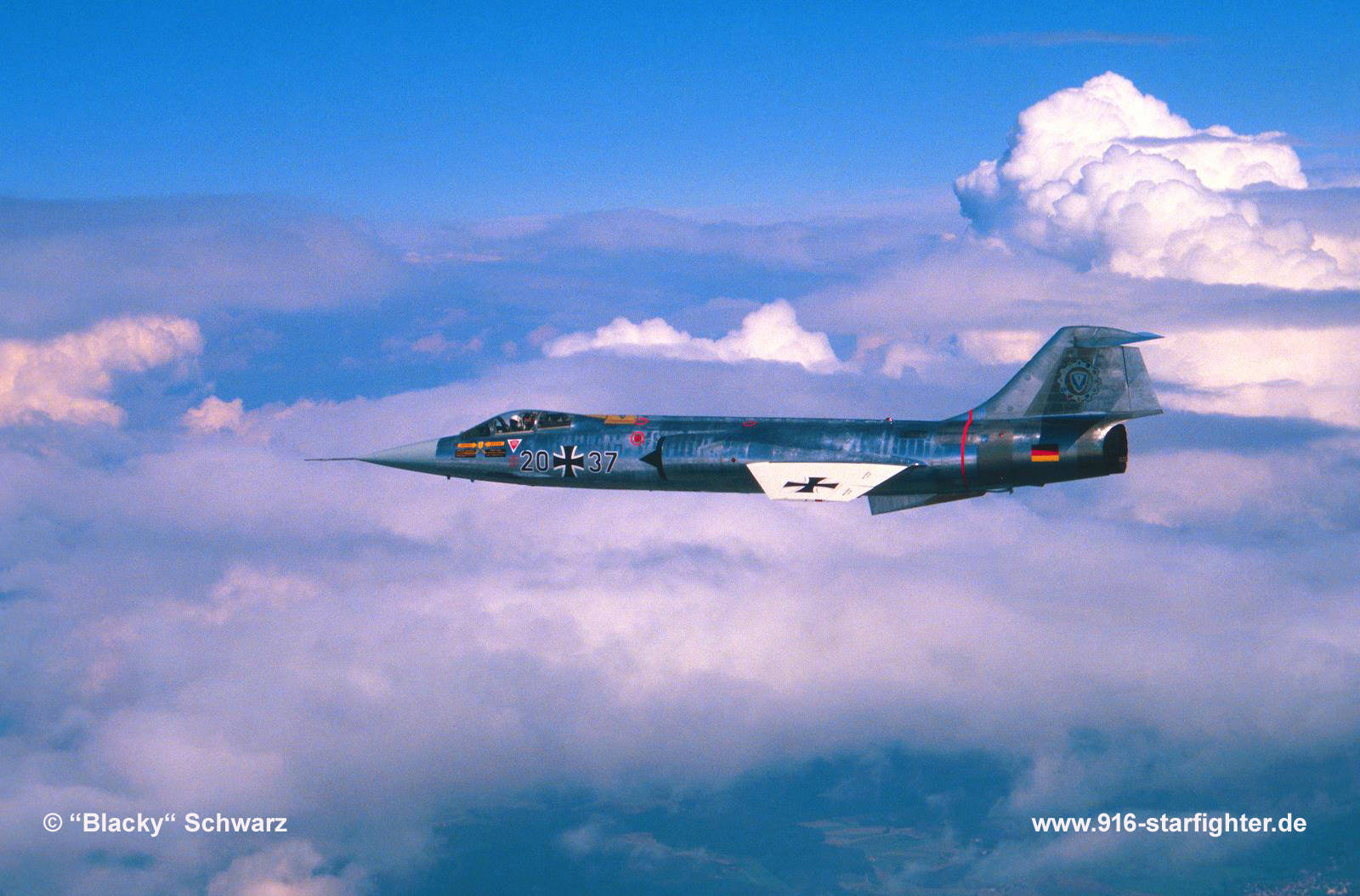 F-104G 20+37 on top of the world 20+37 in metal finish for the 30th anniversary of LVR 1 September 1986 copyright © Gottfried "Blacky" Schwarz