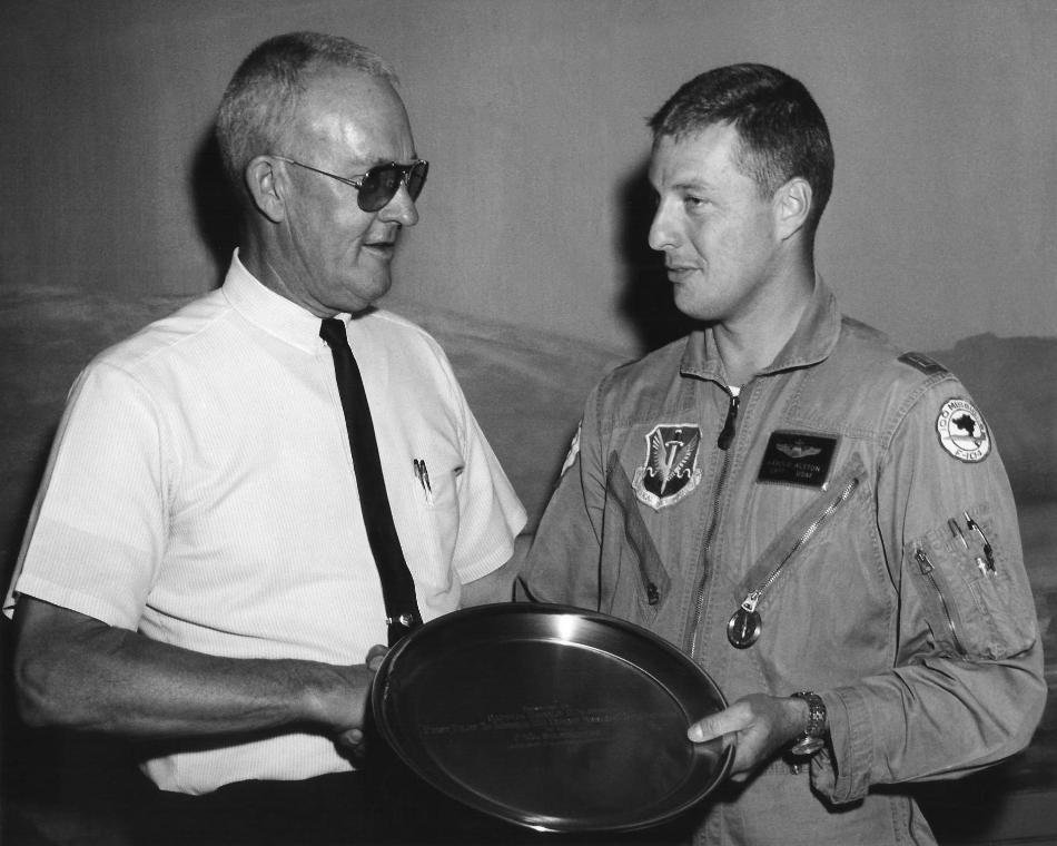 Tony LeVier, Lockheed Test Pilot and the 1st to fly the F-104, presenting him with a plaque from