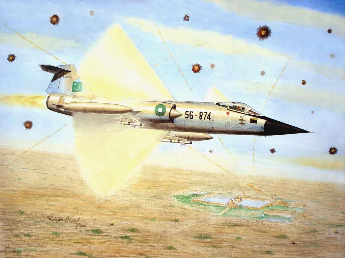 F-104A "56-874" 9 squadron PAF piloted by FL Farooq Umer over Golden Temple, Amritsar, India