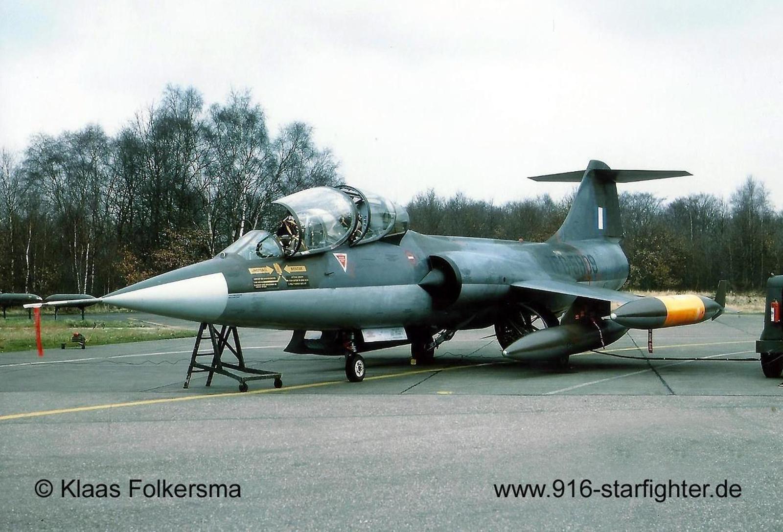 TF-104G "TFG-5909" Hellenic Air Force, ex 27+80 (construction number 5909) in Luftwaffe camouflage scheme at Kleine-Brogel in April 1979 copyright © Klaas Folkersma