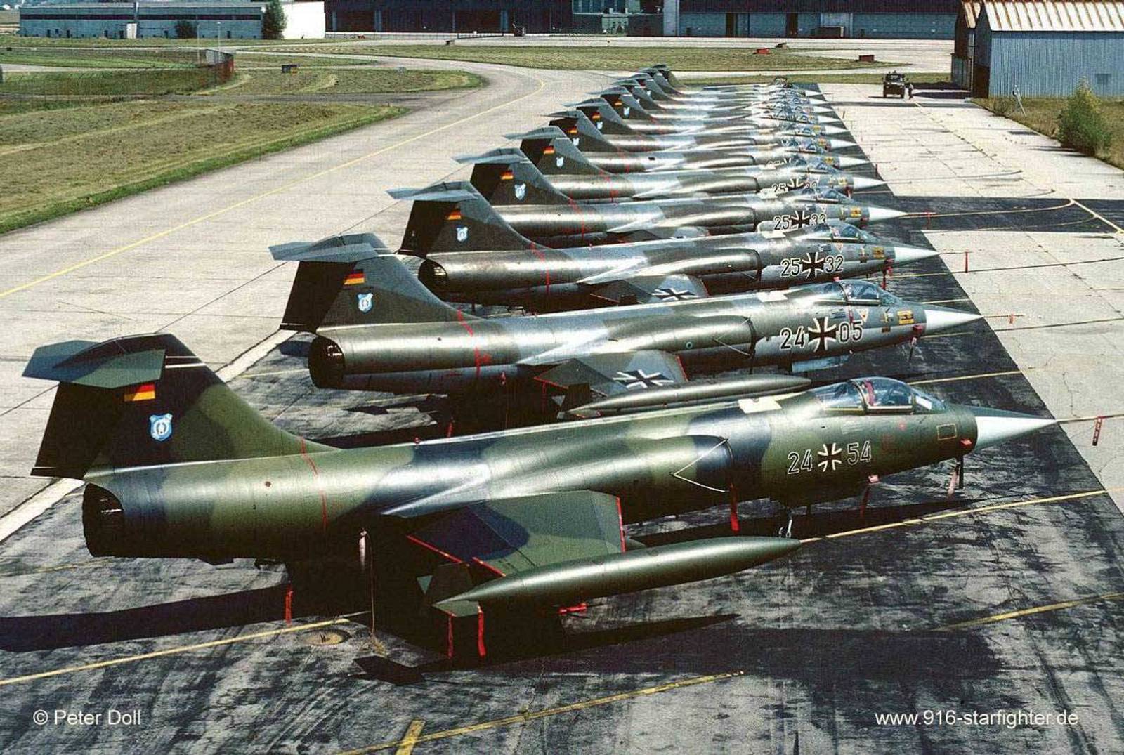 F-104G 24+54 of "F-104 Kommando" of Luftwaffenversorgungsregiment 1 (LVR 1) lining up at Erding AB copyright © Peter Doll