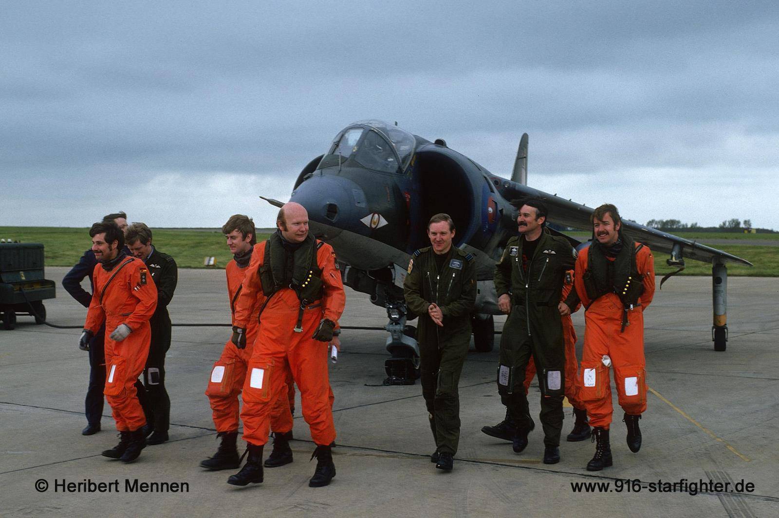 pilots of Jagdbombergeschwader 31 (JaboG 31) from Norvenich AB arriving at RAF Wittering for a squadron rotation with Royal Air Force Nr.1 Squadron in June 1975 JaboG 31 pilots (in red cold water protective flying suits): OLt Aarne Kreuziger-Janik, OLt Tietje, Maj "Yogi" Söldner, Hptm Franz-Josef Schmidt Oberstleutnant “Yogi” Söldner logged 3.814 flying hours on the F-104, he is the German record holder! copyright © Heribert Mennen