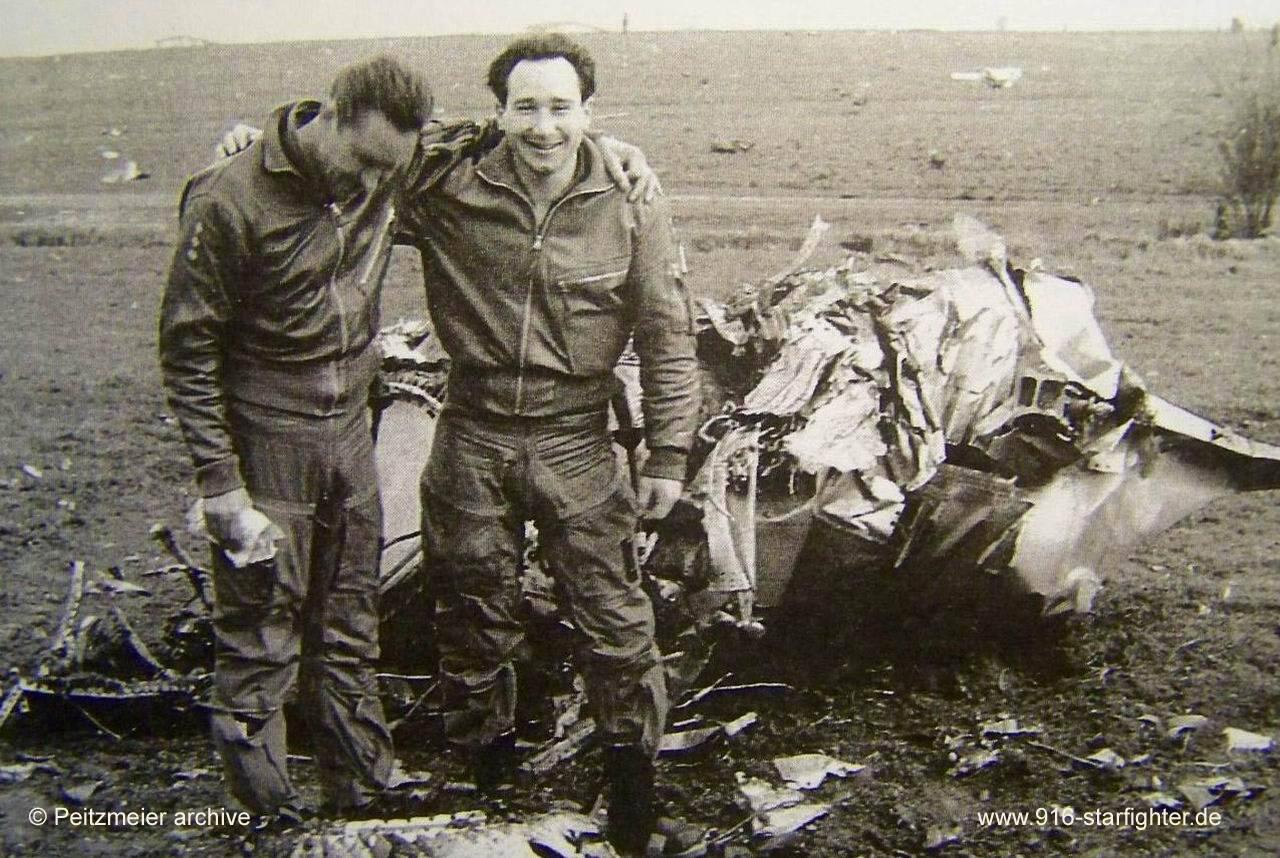 pilots Hptm Hans-Ulrich Flade and Olt Wolfgang Strenkert ejected safely from F-104F coded BB+375 on March 29, 1961 F-104F, construction number 283-5062, model 483-04-08, US serial number 59-5009, built by Lockheed manufactured by Lockheed Aircraft Cooperation (LAC); assembly at Lockheed-Palmdale; first flight 1960 with US serial number 59-500 shipped to Bremerhaven, Germany on August 3, 1960, transported via train to Messerschmitt-Norvenich for reassembly Messerschmitt test flight on September 7, 1960; acceptance date September 23, 1960 by BABwMTT in Silver-finish colors coded BB+375 WaSLw 10 (OTU Operational Training Unit) at Norvenich Air Base delivery date on September 27, 1960 crashed after engine failure during a supersonic training flight due to malfunction of the fuel control unit on March 29, 1961 near Korbach, Germany both pilots Hptm Hans-Ulrich Flade and Olt Wolfgang Strenkert ejected safely; Lockheed C-2 seat; struck off charge order March 8, 1962. 1st Luftwaffe Starfighter loss! copyright © Hubert Peitzmeier via Luftwaffe archive