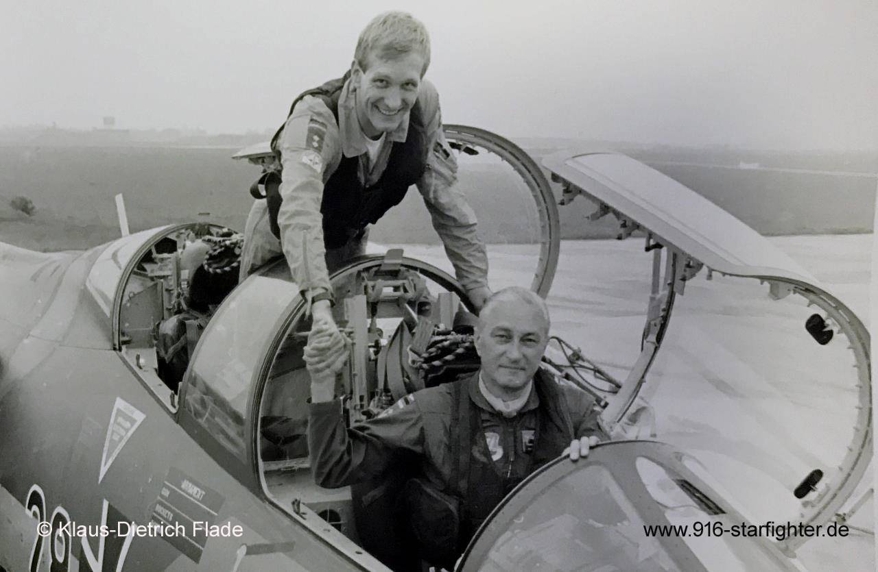 Father and son Flade at Memmingen AB on July 8, 1983 This day they flew a formation in 2 TF-104G GenMaj Hans-Ulrich Flade 16.04.1960 - 30.09.1962 Staffelkapitän 4./Waffenschule der Luftwaffe 10, Nörvenich 01.10.1962 - 30.09.1964 Kommandeur Ausbildungsgruppe der Waffenschule der Luftwaffe 10, Nörvenich 01.10.1964 - 31.03.1966 Kommandeur Fliegende Gruppe im Jagdbombergeschwader 33, Büchel 01.04.1966 - 31.03.1969 Kommodore Jagdbombergeschwader 34, Memmingen 01.04.1972 - 30.09.1974 Assistent DCS/Op. 4.Allied Tactical Air Force (ATAF), Ramstein 01.10.1976 - 30.09.1980 Kommandeur Deutsches Luftwaffenausbildungskommando, Fort Bliss/Texas 01.10.1980 - 31.03.1985 Chef des Stabes HQ 2.Allied Tactical Air Force (ATAF), Mönchengladbach Kosmonaut OTL a.D. Klaus-Dietrich Flade, Experimental Test Pilot and Cosmonaut 7.03.1992 - 25.03.1992 Einsatz als Bordingenieur bei der Mission Mir 92. Im Rahmen dieser Mission führte er 14 deutsche Experimente durch. copyright © Klaus-Dietrich Flade