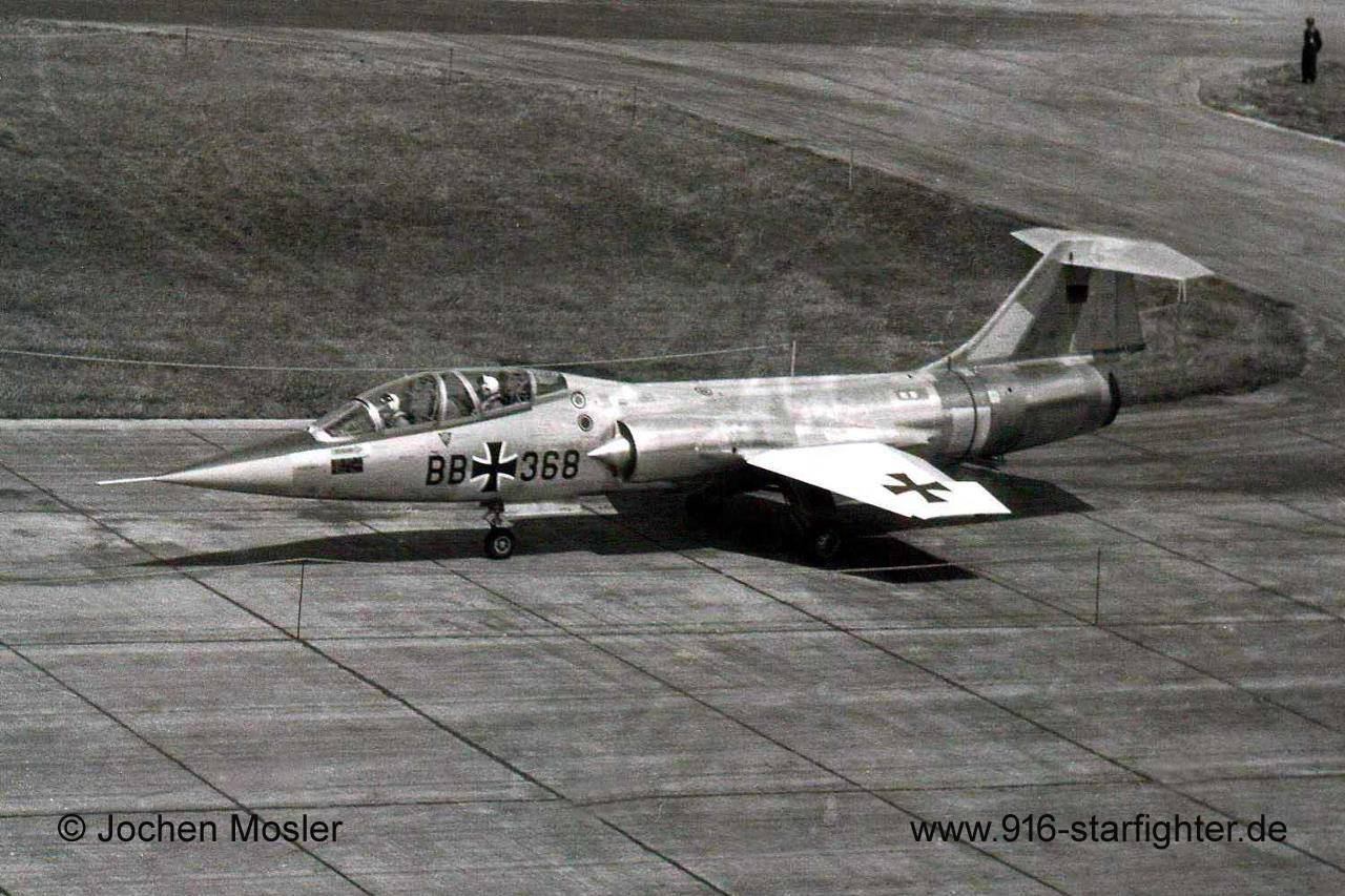 F-104F BB+368 of WaSLw 10 at Norvenich AB July 22, 1960, presentation to the German Press Similar to the F-104D, version for West Germany, produced 1959-1960, at Lockheed-Burbank,California (LCC) It was a minimum-change version of the F-104D two-seat combat trainer.