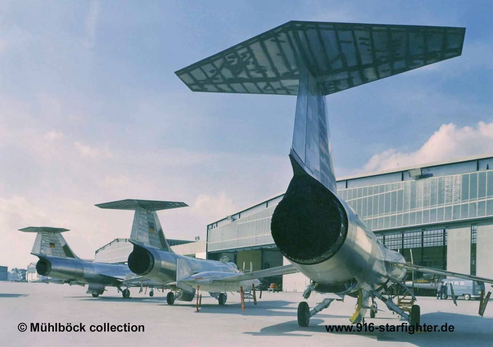 TF-104G construction Number "5931" undergoing periodic inspection at Manching AB 1969 Flightline of the Messerschmitt-Manching factory with the Starfighter in bare metal. copyright © Peter Mühlböck collection
