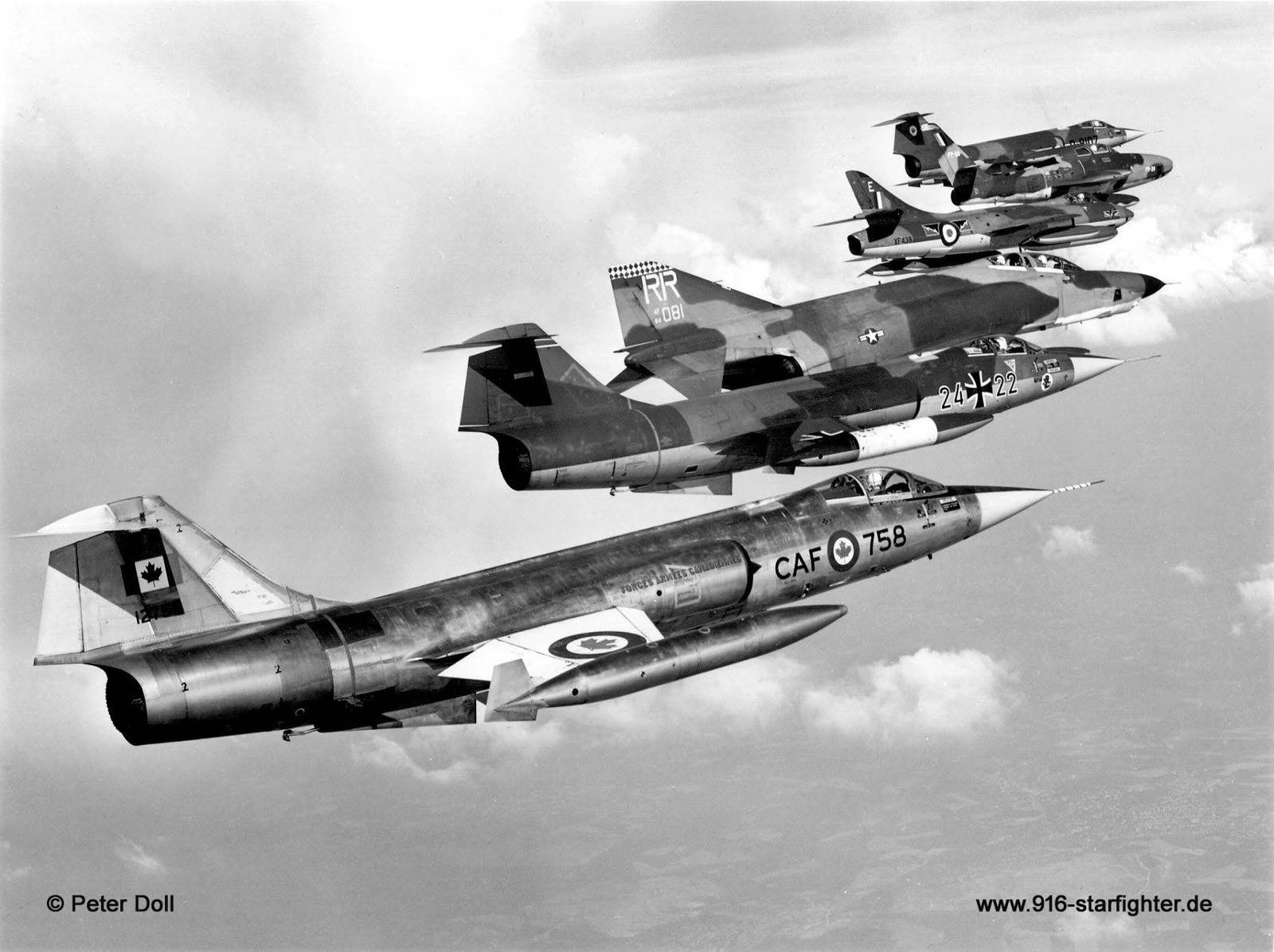 RF-104G 24+22 of AG 51 in parade formation at the annual NATO recce exercise "Royal Flush" at Deelen AB, Netherlands in May 1970 "Royal Flush XV" was held at Deelen AB in May 1970 The Dutch Air Force 306 Squadron was flying RF-104G Starfighters during this meet as well as the Canadian Armed Forces 439 squadron with CF-104's with Vicon equipment. Also the German Air Force AG 51 was participating, for the last time participants were: USAFE from 26 TRW and 10 TRW with RF-4 Phantoms; BAF 42 squadron with Thunderflashes CAF from 1 CAG flying CF-104 Starfighter; RDAF 729 Esk with Thunderflashes; FAF from ER 33; Luftwaffe AG 51 with RF-104G Starfighter RAF 31 squadron with Hunter and KLu 306 squadron equipped with RF-104G Starfighter. copyright © Peter Doll