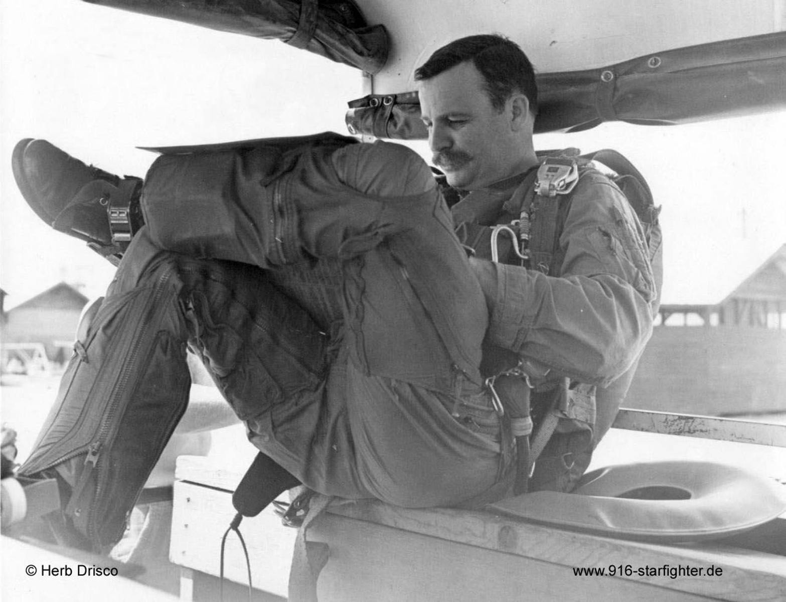 pilot Floyd Totten sitting on alert with the "Donut" seat cousin ready in front of the quarters at Udorn RTAFB, Thailand 1967 copyright © Herb Drisco "Ace" Rawlins explained: We were flying really long missions and the seats were hard and a bit uncomfortable after 3 or 4 hours. Our missions were averaging 5 hours with some going as long as 8 to 9 hours. The life support types told us the reason the cushion was hard was to reduce back injury upon ejection and of course it was not legal to use a soft cushion. Anyway, I got an inner-tube from a start unit tire and tried it out. Worked fine and caught on fast. My first flight was a big learning curve and I figured out right away that you didn’t need much air in the tube cause it expanded as you went to altitude. I had too much air in it and had to release some. Lesson #2 was to place the valve stem in the front so you could get to it to release air and to have your survival knife handy in case you needed to puncture the donut. After a flight or two the air was set right and didn’t have to be changed any more. It made a big difference on the long flights and most of the pilots began to use them.