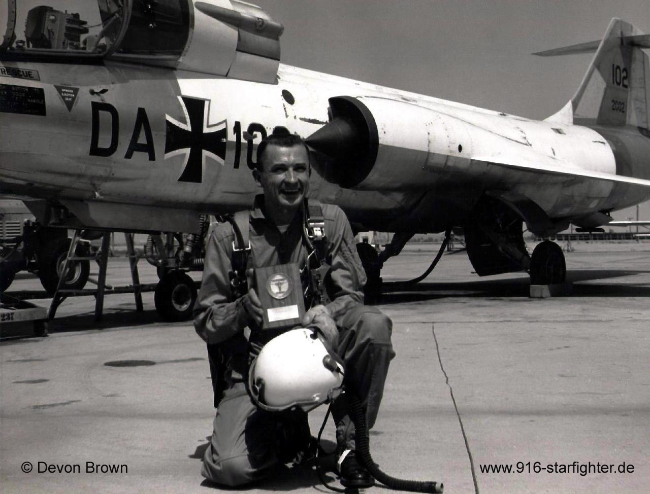 Lockheed F-104 test pilot Ed Brown proudly present the "1000 hours test flying" plage in May 1962, later "ZELL" test pilot copyright © Devon Brown