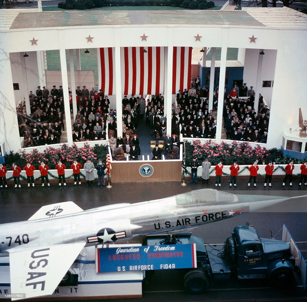 F-104A passes the Presidential reviewing stand 1957 United States Presidential Inaugural Day Parade at Washington DC for President Dwight D. Eisenhower on January 20, 1957 down Pennsylvania Avenue from the Capitol to the White House. copyright © USAF DoD archive