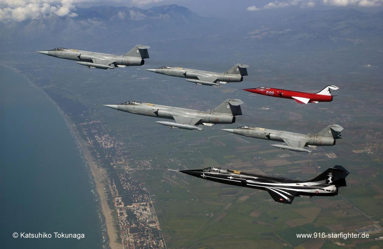 F-104S ASA-M 6 ship formation with colored "Nerone" (left) and "9.99" (right) in 2004 copyright © Katsuhiko Tokunaga
