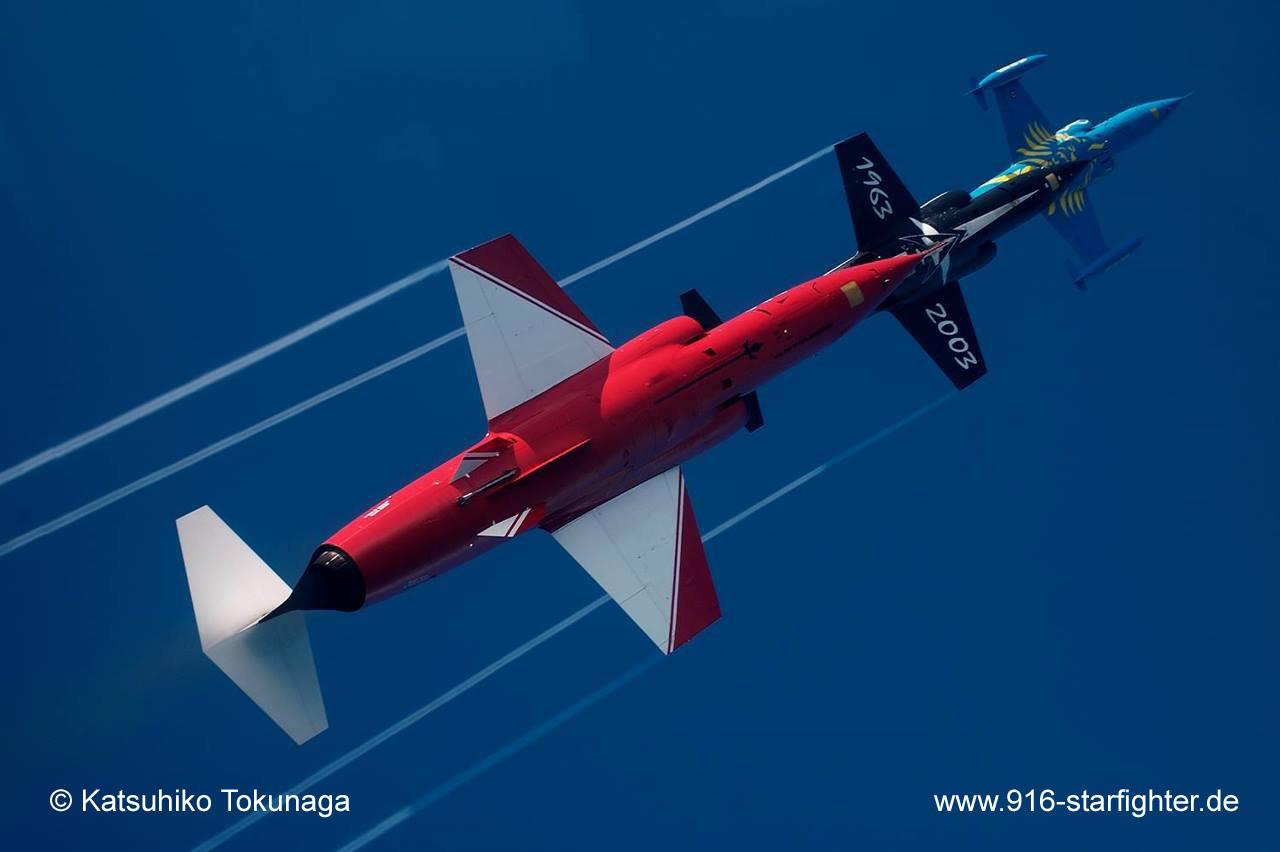 F-104S formation with TF-104G-M MM54253 "4-20" (lead) "Nerone" (middle) and "9.99" (low) in 2004 copyright © Katsuhiko Tokunaga