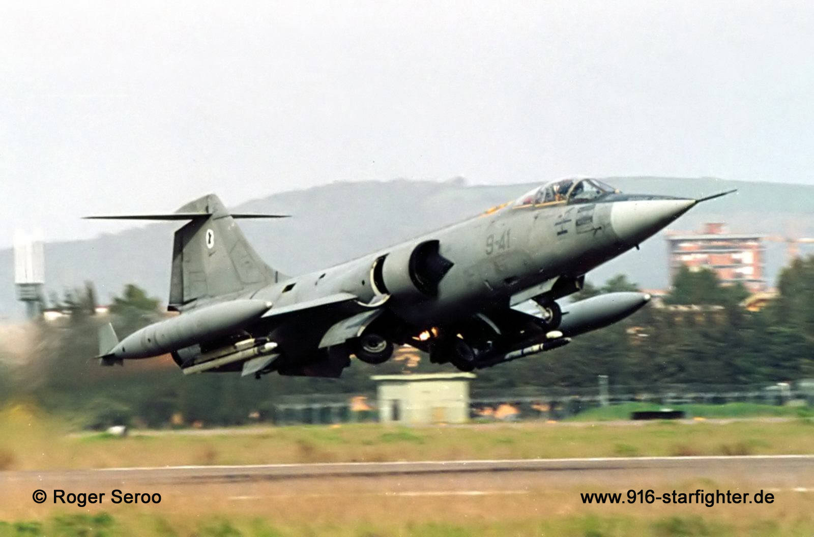 F-104S ASA-M "9-41" taking off from Grosetto AB in 2004 with "Aux Air Doors" open copyright © Roger Seroo
