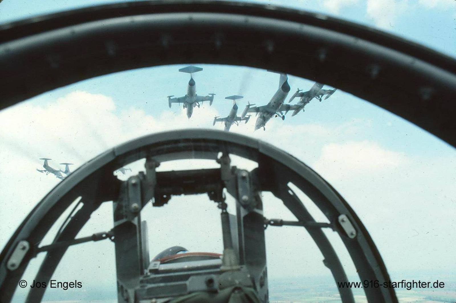 TF-104G flying inside a "dirty" mass formation over Scheveningen, Netherlands on June 13, 1984 copyright © Johan Engels