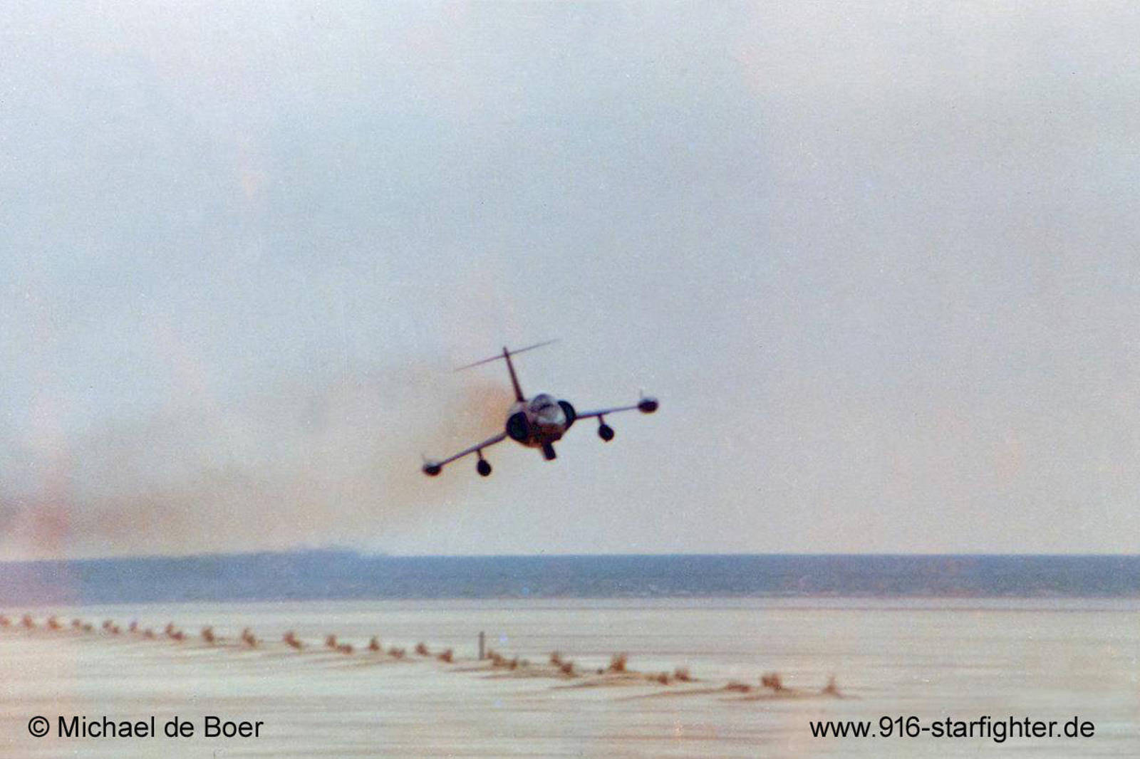 F-104G on a "Skip bomb" pass at 50 feet on Vliehors Range, Netherlands