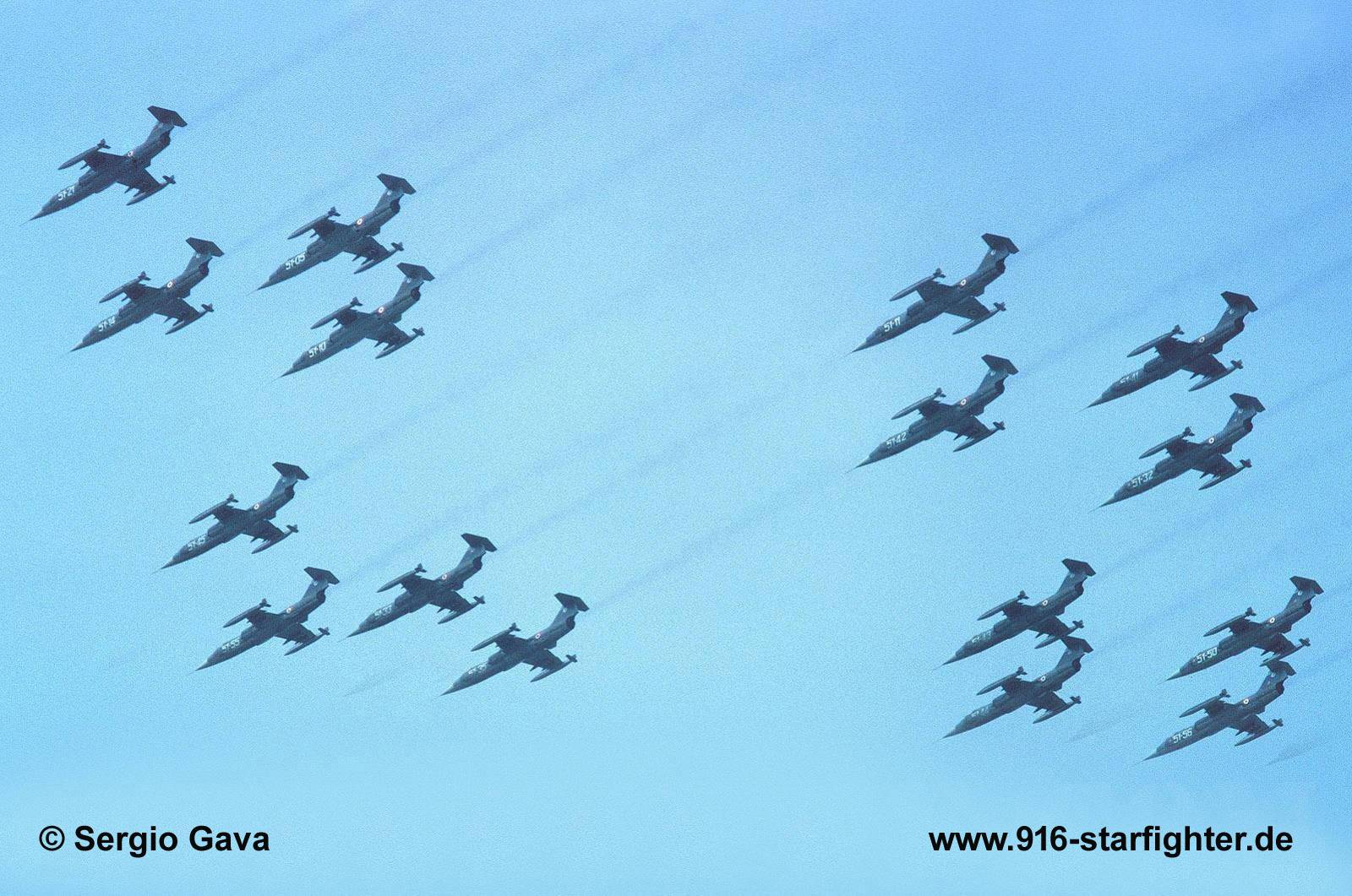 F-104S 16 ship formation of 51 Stormo for the 40th anniversary at Treviso on September 29, 1979 copyright © Sergio Gava