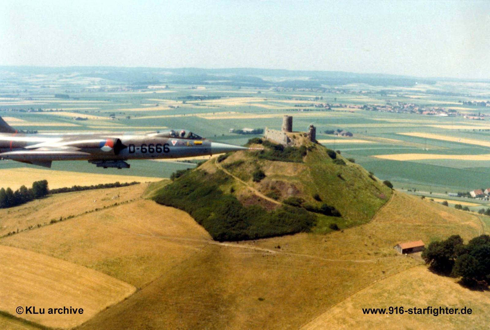 F-104G "D-6666" passing the widely visible "Desenberg Castle" in a "250 feet area" over Germany copyright © KLu archive